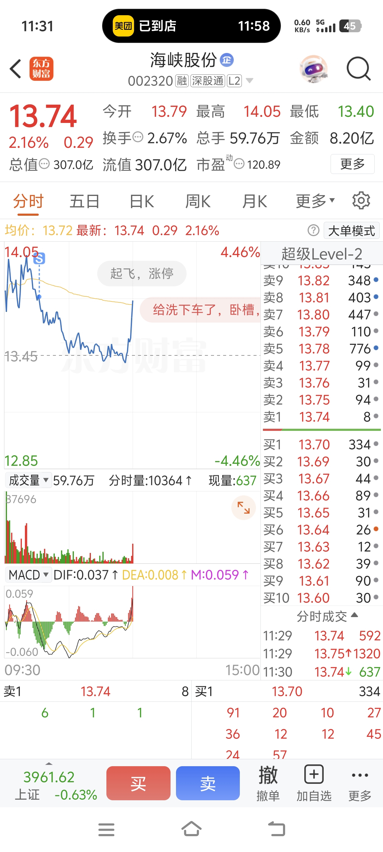 $海峡股份(SZ002320)$ 哦豁,飞咯