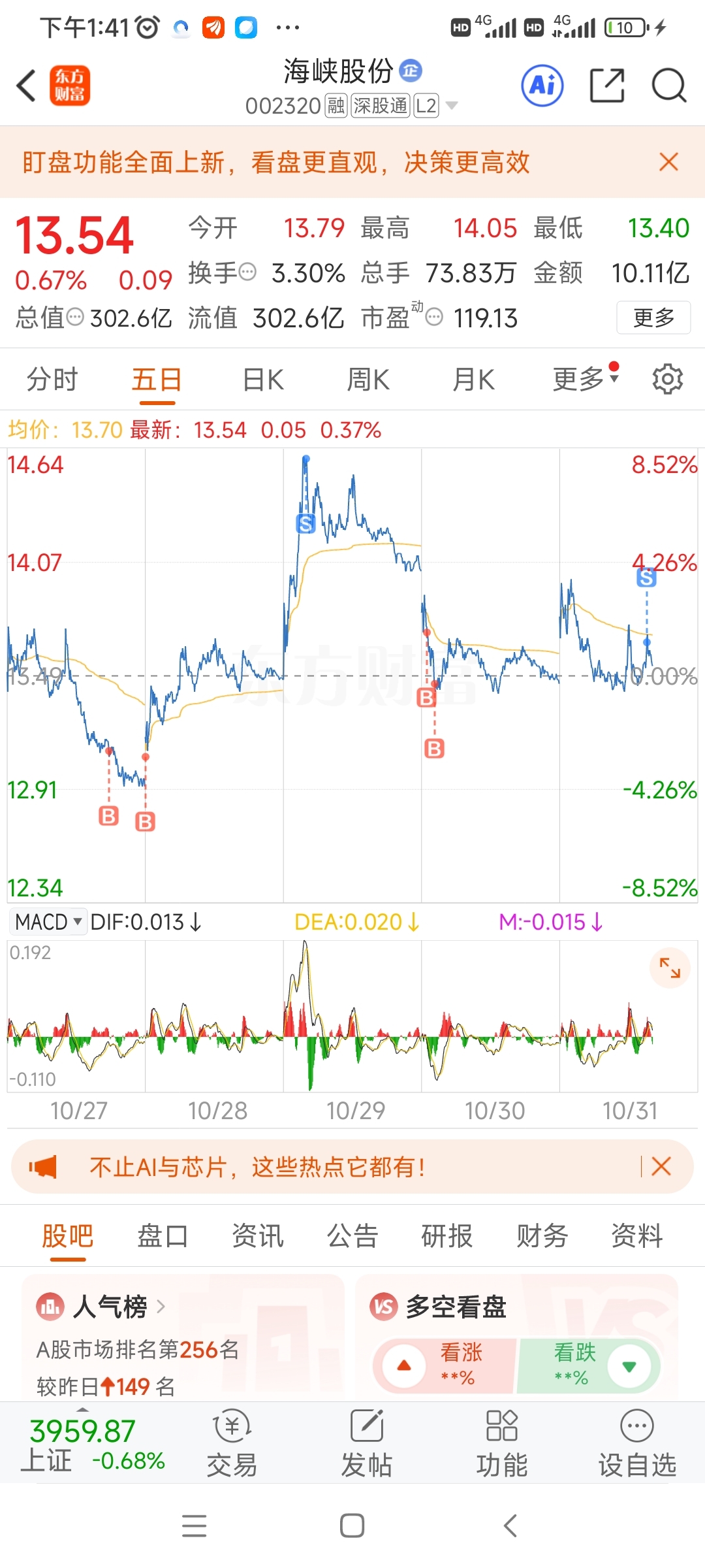 $海峡股份(SZ002320)$ 我也感觉不跟了,清仓了海峡
