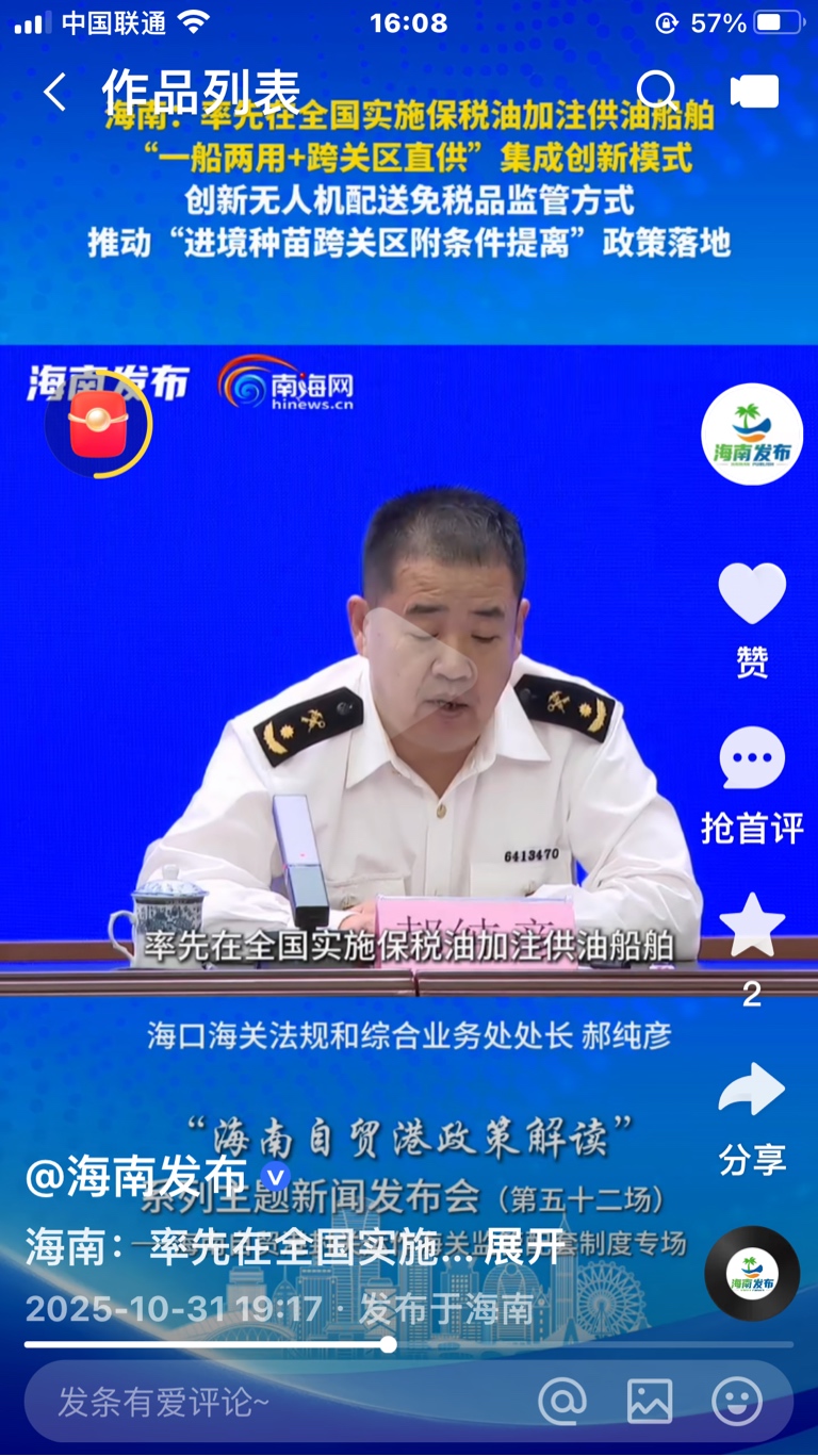 $海峡股份(SZ002320)$ 实施保税油加注供油船舶,利好海峡吗?