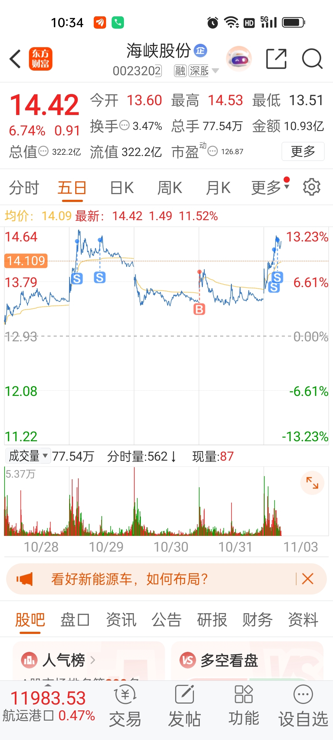 $海峡股份(SZ002320)$ 留下的发财。我等回调再来。