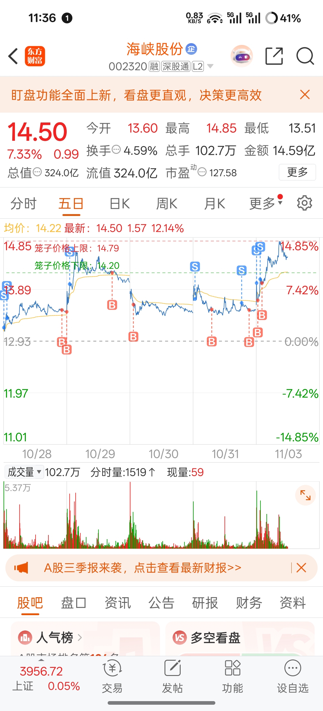 $海峡股份(SZ002320)$ 每天t一点,本金不高,可以吃个猪脚饭