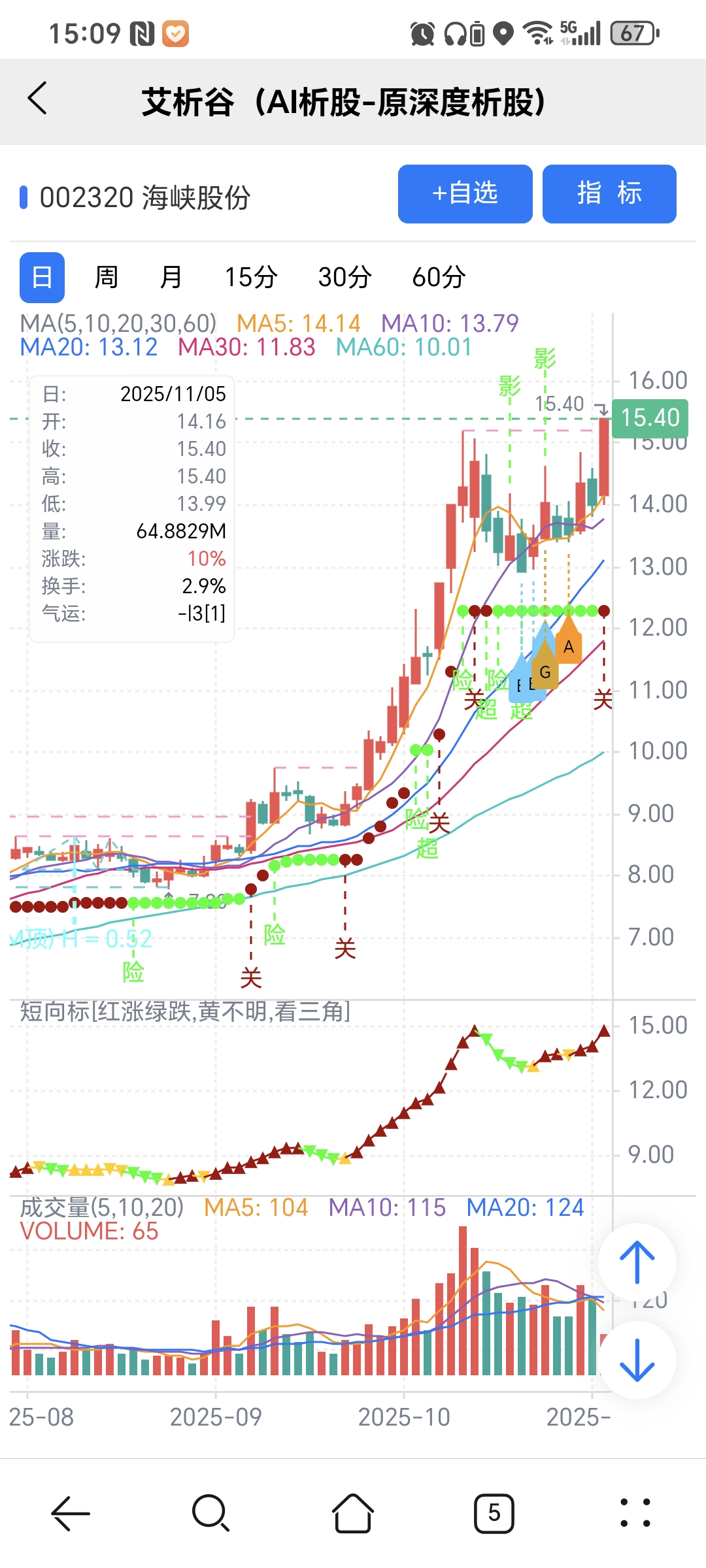 图中A、B、G 关注标记是对应AI选股模型当天下午2点多给出。