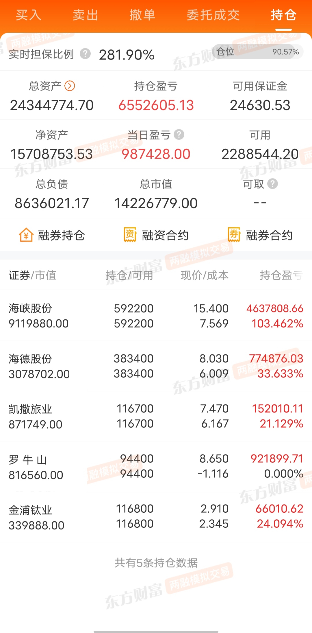 $海峡股份(SZ002320)$ 这是我用模拟账户炒的,说实话,用自己的账户炒不出这种成绩,我试着玩买的,自己都忘了,这几天出想起来买过这些海南股,是不是跟那些天天晒单的好像,其实他们就是这种玩意搞的,反正又不要钱,亏了不会晒,赚了就拿出来吹牛,让你们买它的会员带你们炒股,其实水平还不如自己炒