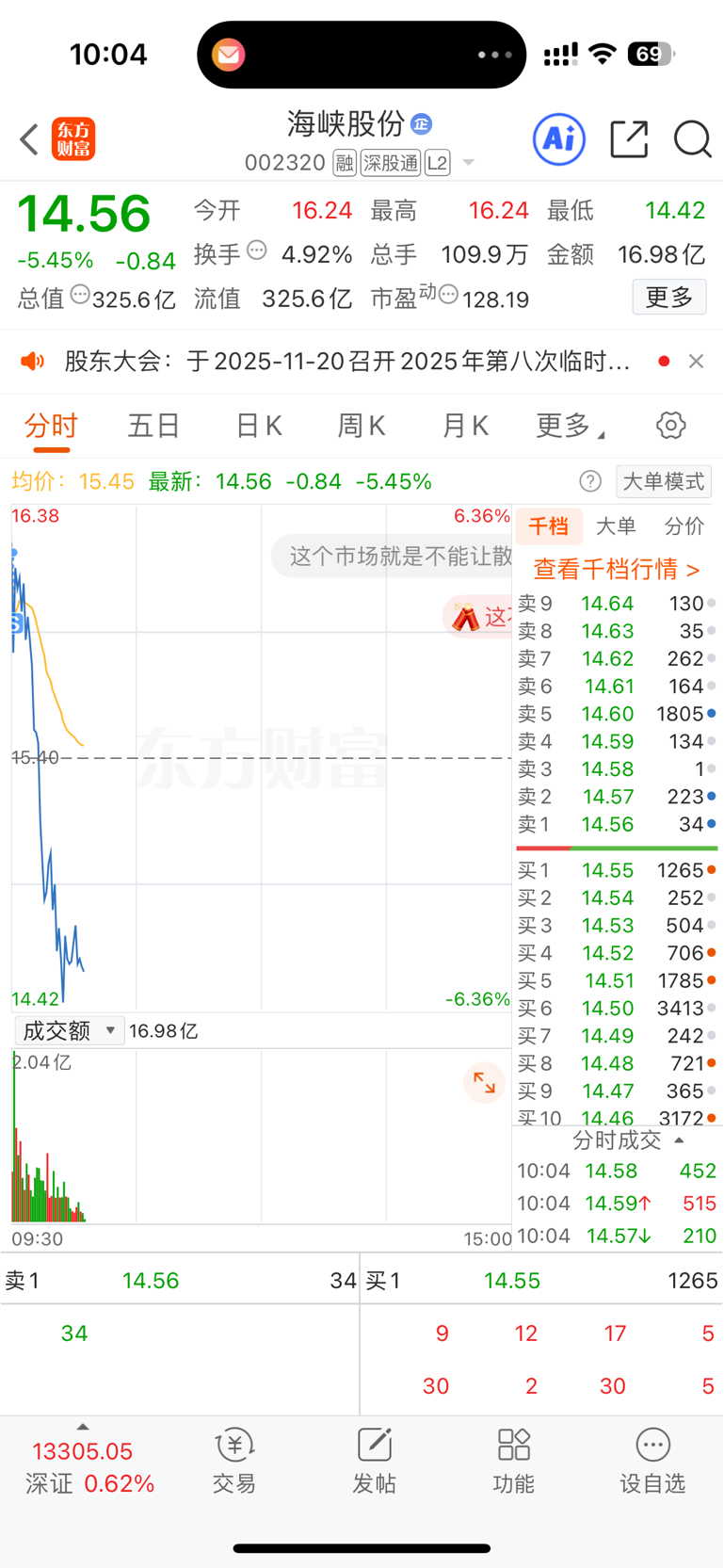 $海峡股份(SZ002320)$ 让你们笑话我吧,开盘就跑了