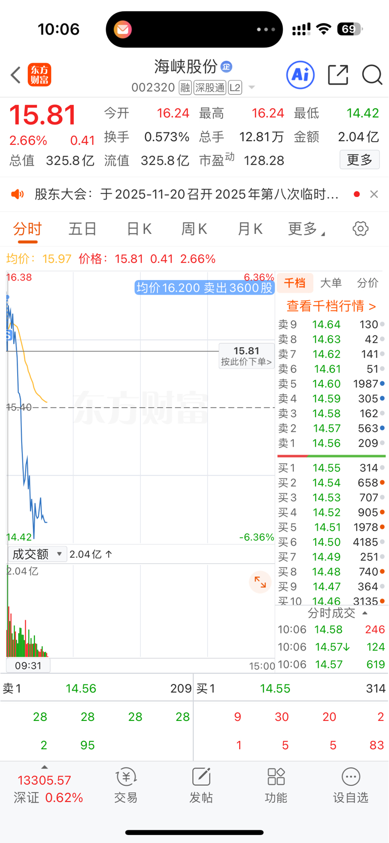 $海峡股份(SZ002320)$ 开盘跑了,多挣5000