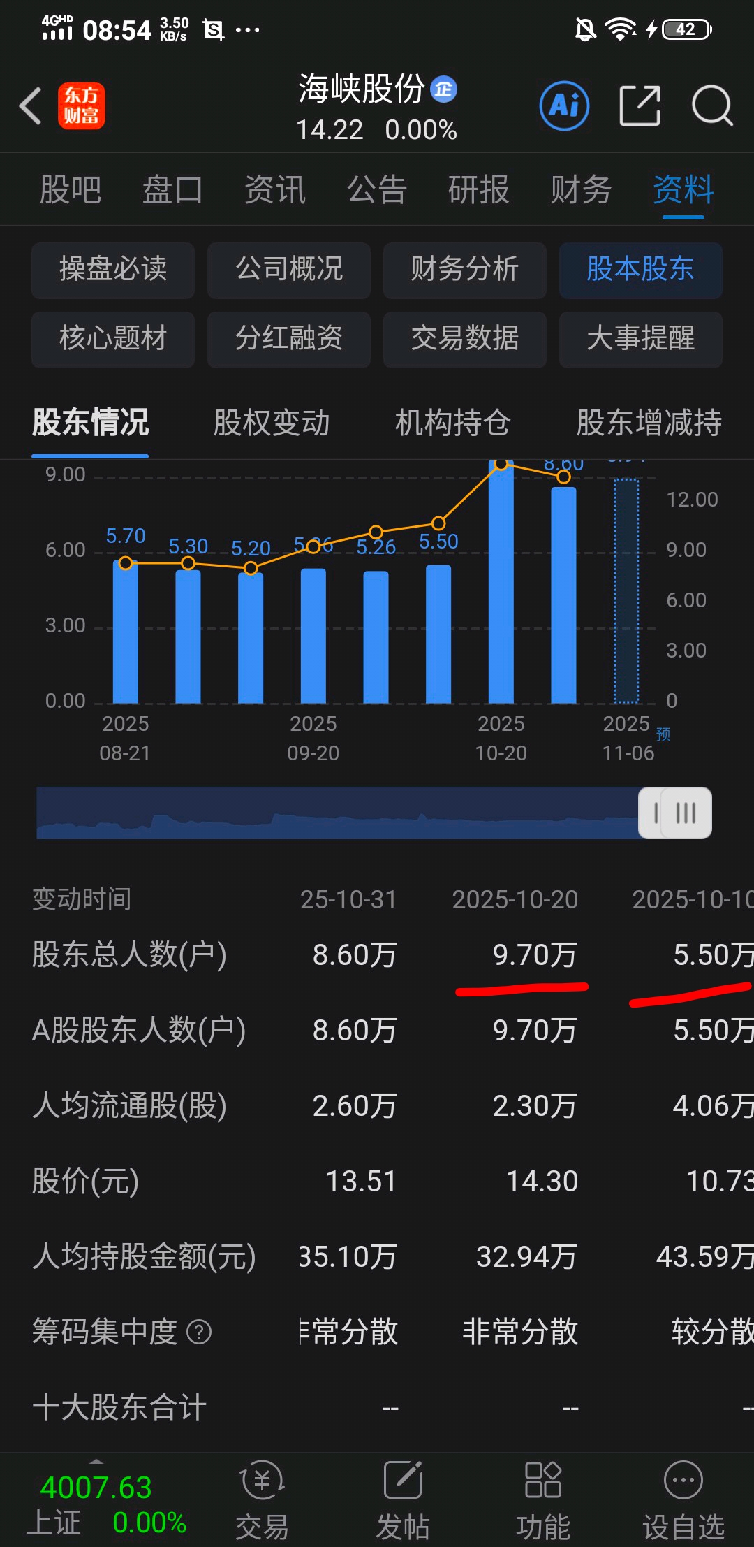 $海峡股份(SZ002320)$ 小心!海峡的散户从5万增加到9万人,说明在15元处,庄家出货,散户买进!庄会低位给散户买入吗?千万小心!