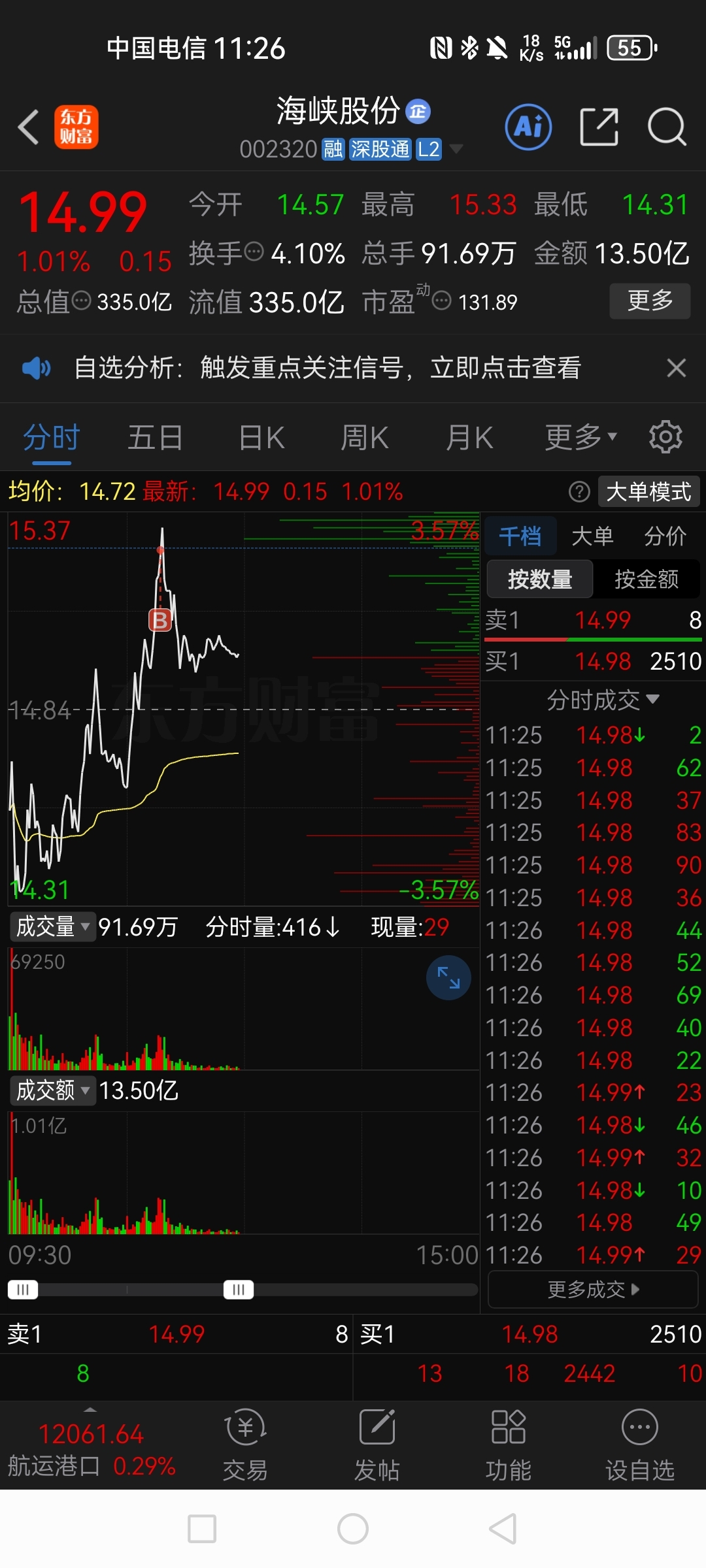 $海马汽车(SZ000572)$ $海南发展(SZ002163)$ 我一来你就跌?