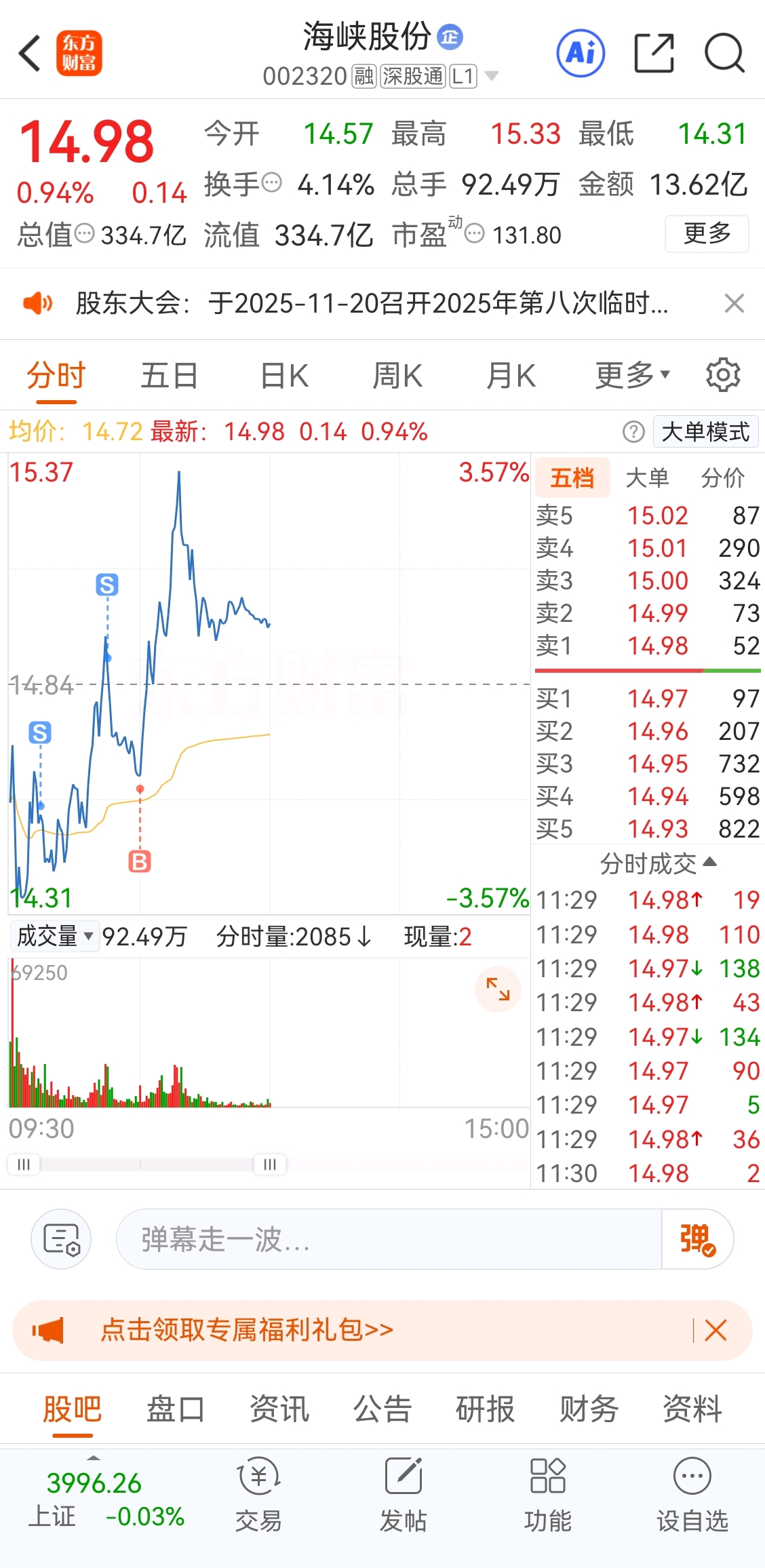 $海峡股份(SZ002320)$ 会做T的高手这几天都爽了,今天试着做T差点就做反了,技术不行还是不乱动好
