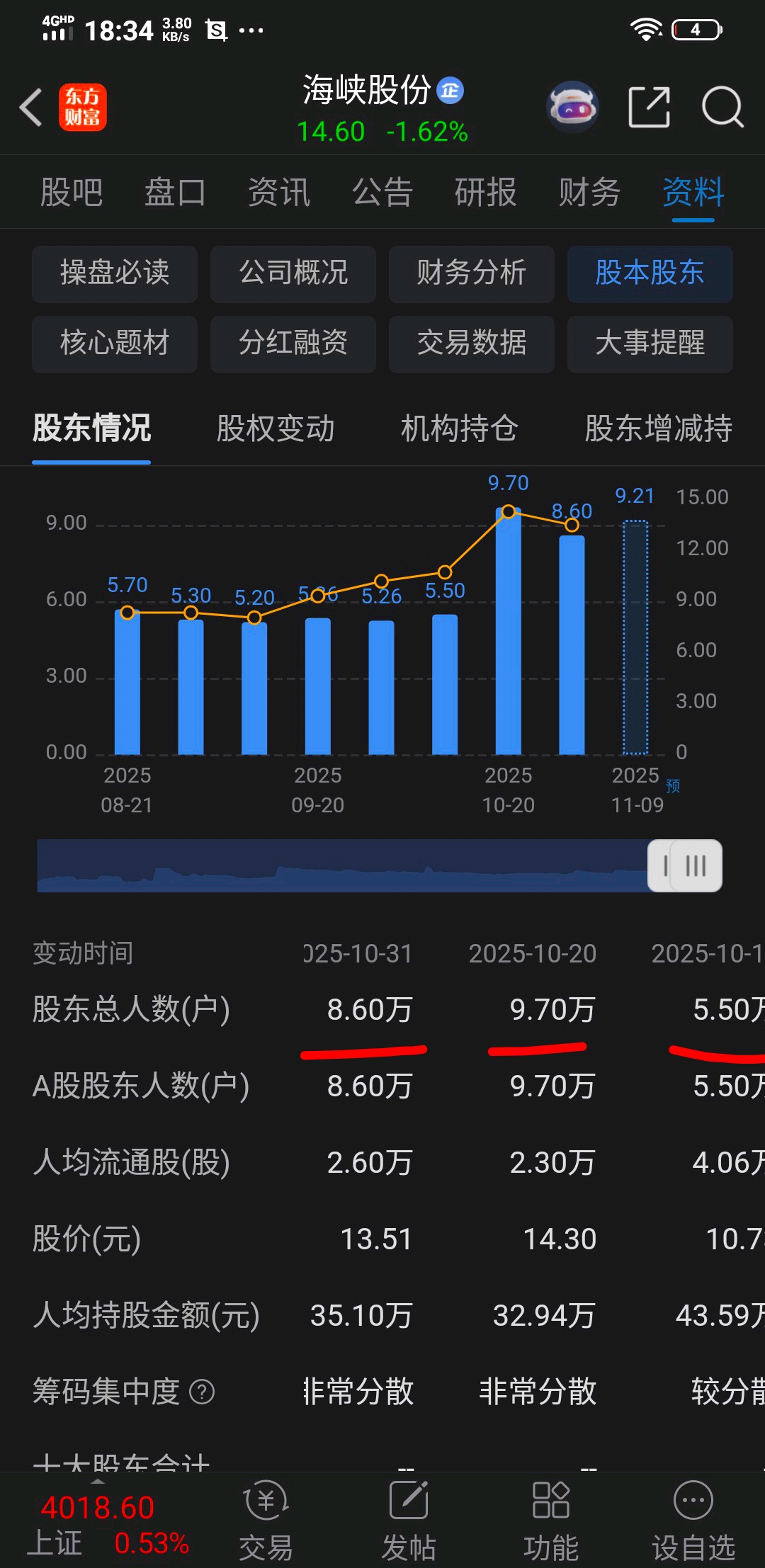 $海峡股份(SZ002320)$ 不妙的!散户增加一倍!再这样抛!小心