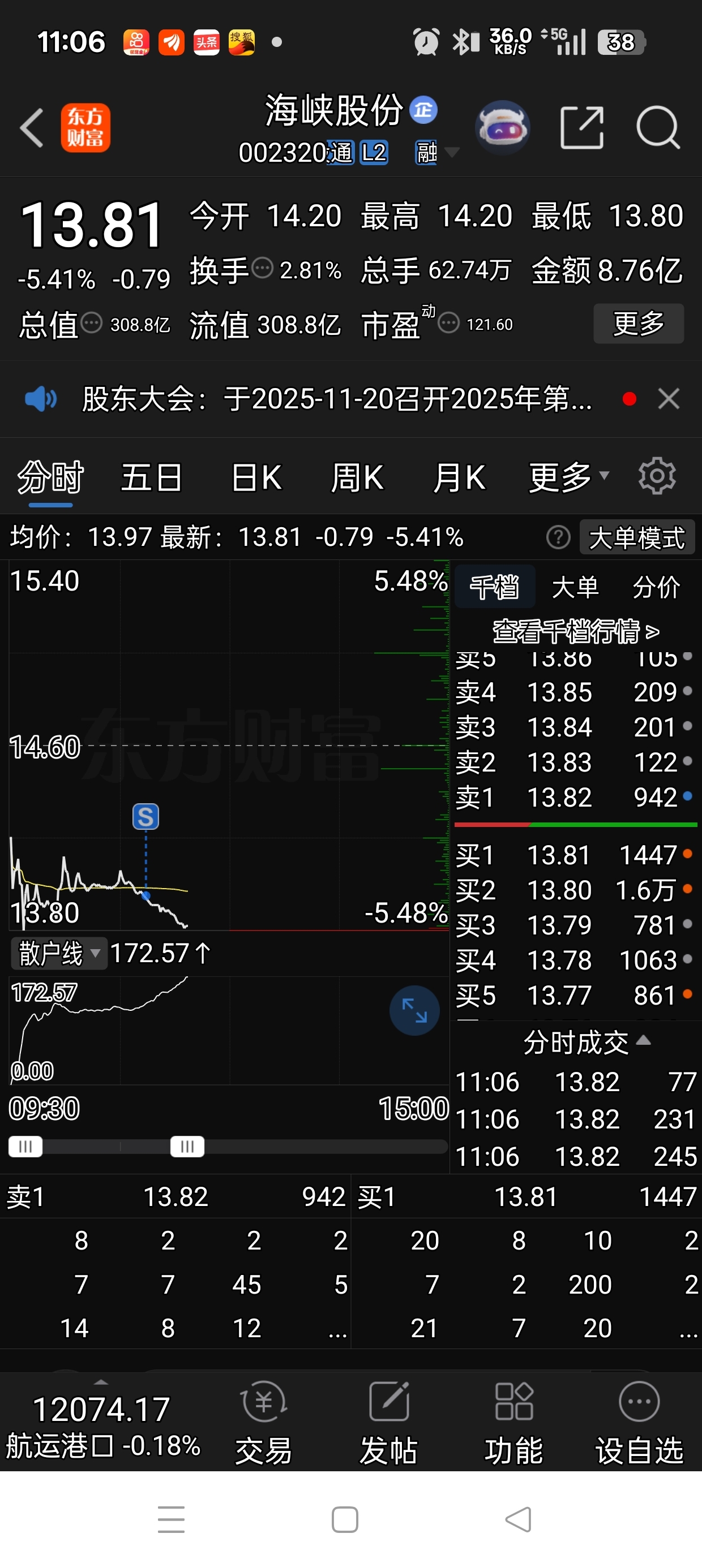 $海峡股份(SZ002320)$ 我这已经很格局了,耐何。唉9个点没有了