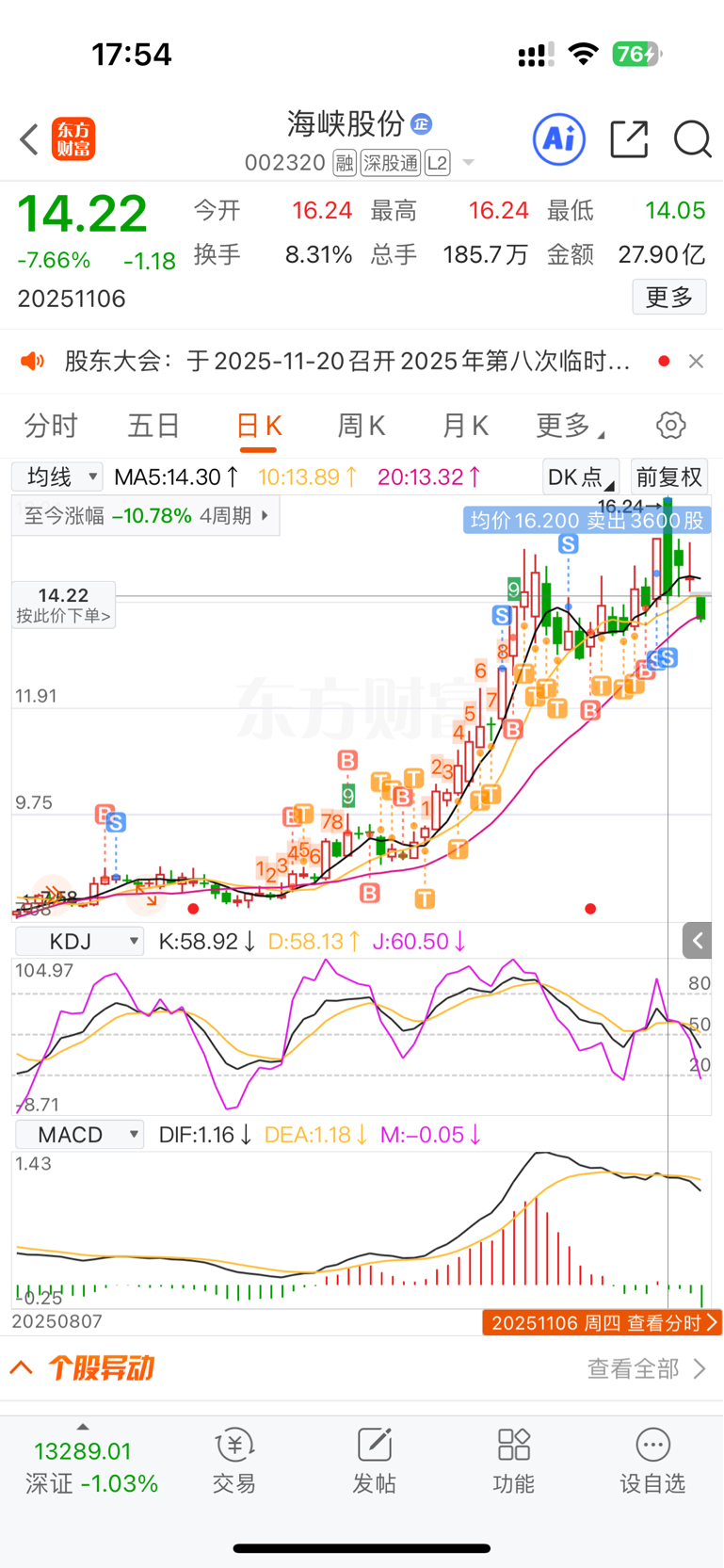 $海峡股份(SZ002320)$ 历史大顶跑了