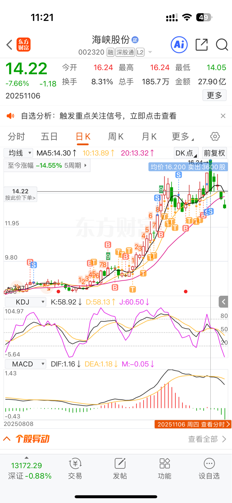 $海峡股份(SZ002320)$ 最牛的一次成功逃顶
