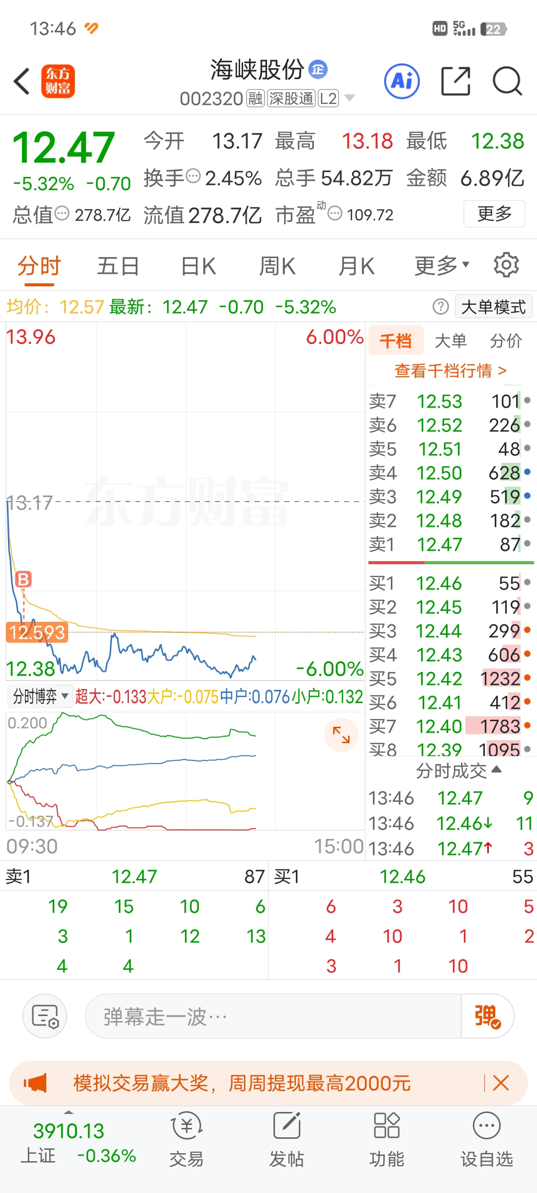 $海峡股份(SZ002320)$ 沿着我的成本线走