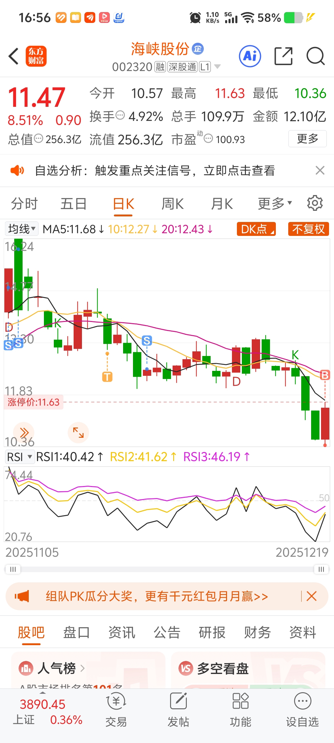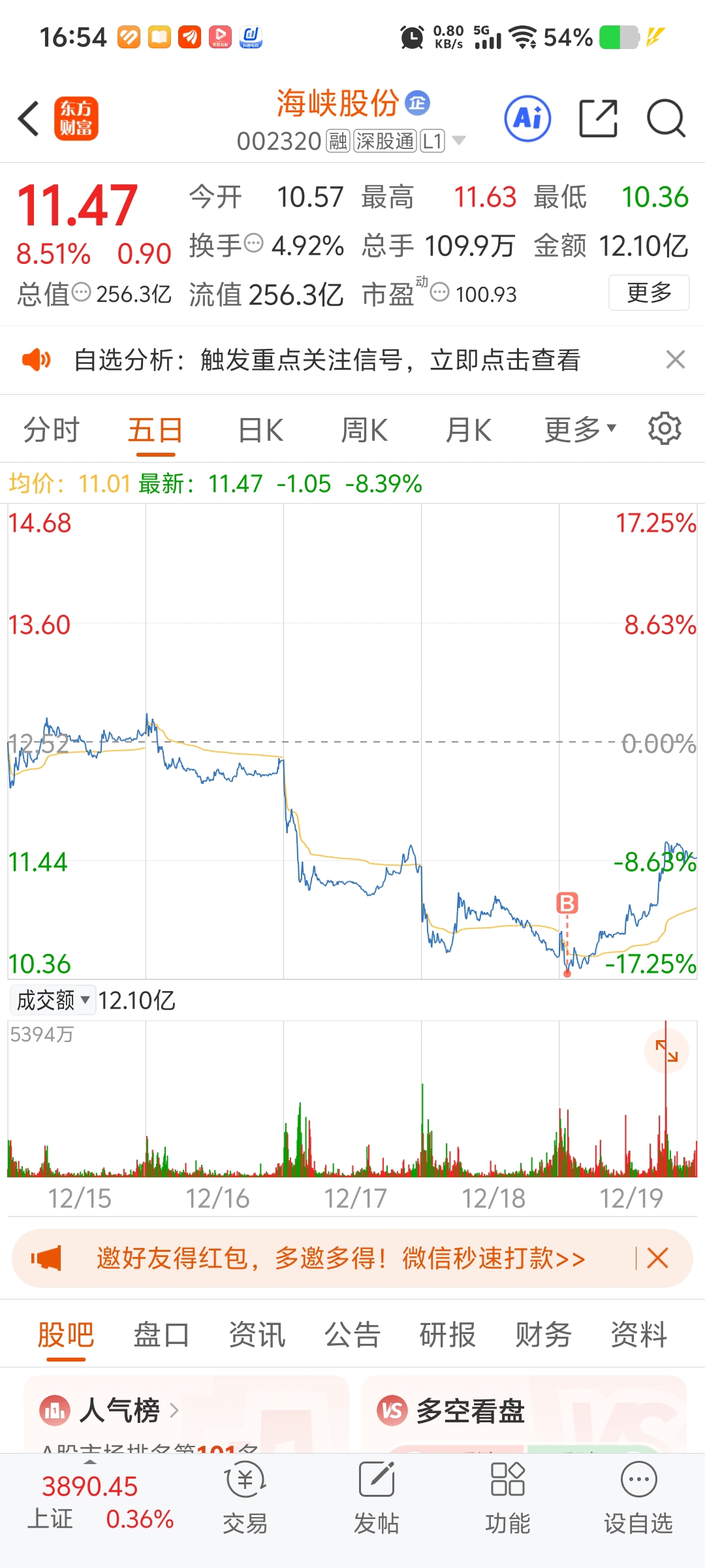 $海峡股份(SZ002320)$ 平均价6.4元, 买了一年了,15.到16.04全部卖了,留了100股,13左右也卖了,今年就海峡赚了几十万,一年买好一个股就可以,短线我是不敢重仓,也赚不到钱,长线才是稳,,,今天进了点,希望回撤不要太大,这次赚1个就走,