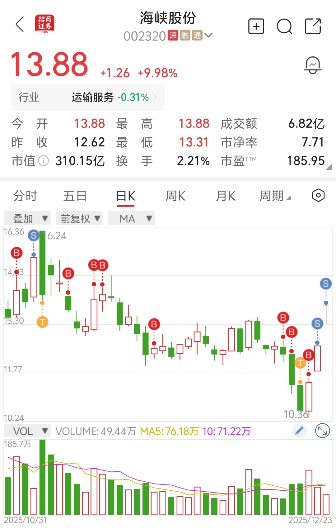 $海峡股份(SZ002320)$