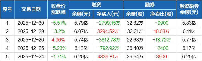 海峡股份:融资净偿还2799.15万元,融资余额5.79亿元(12-30)