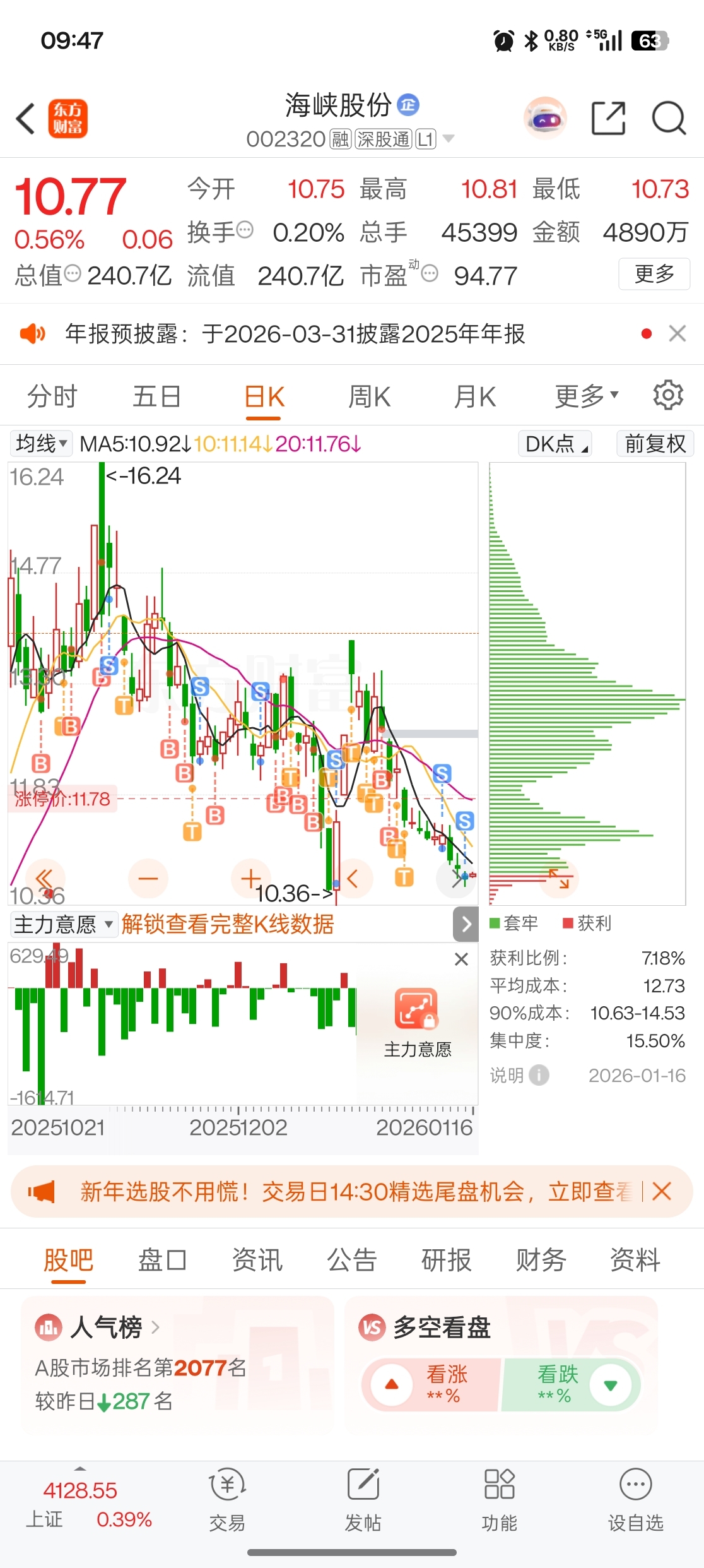 $海峡股份(SZ002320)$ 这种行情,t也t飞,亏20个点,放着等春节后了