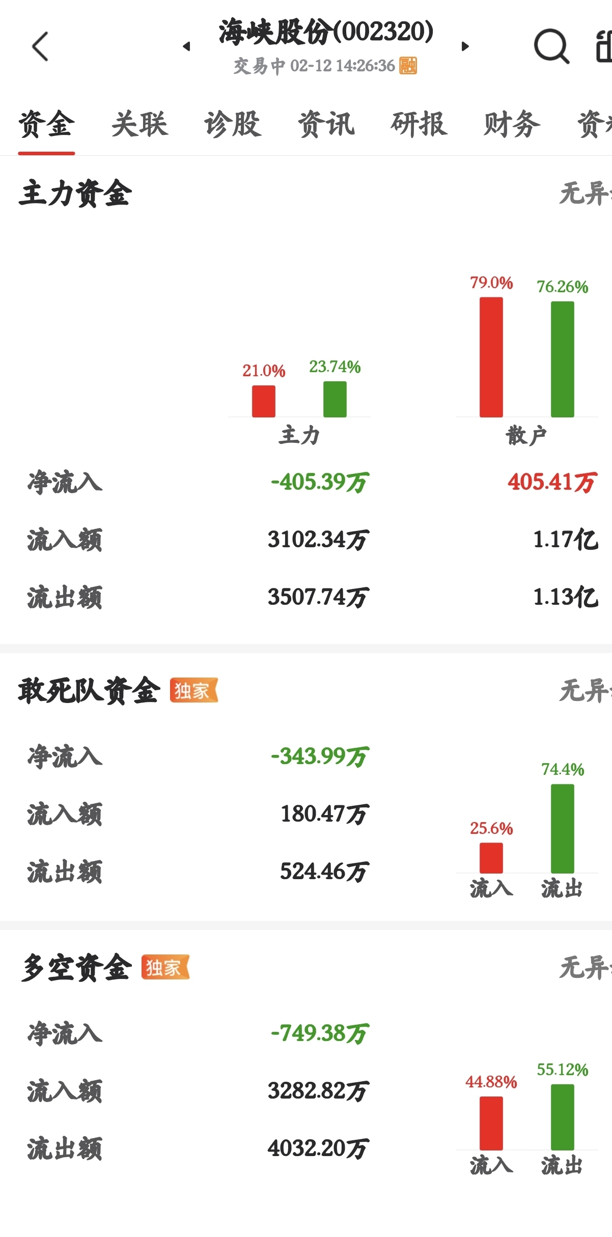 $海峡股份(SZ002320)$ 主力净流出