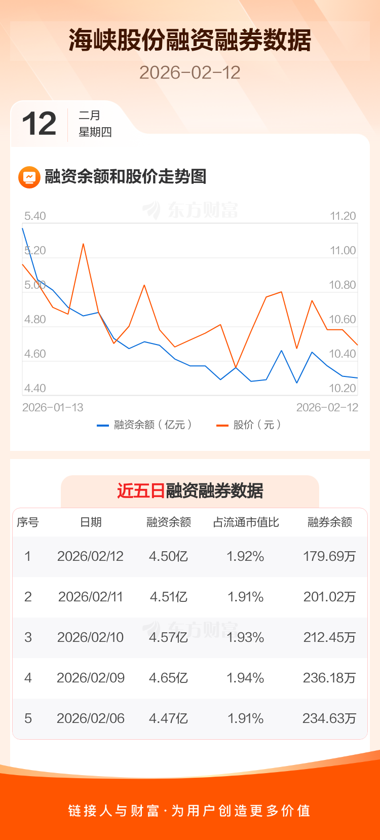 交易所最新数据显示,海峡股份于2026年2月12日获融资买入1487.61万元,融资偿还1659.13万元,当日融资净偿还171.52万元。目前,该股融资余额4.50亿,占流通市值比例为1.92%。