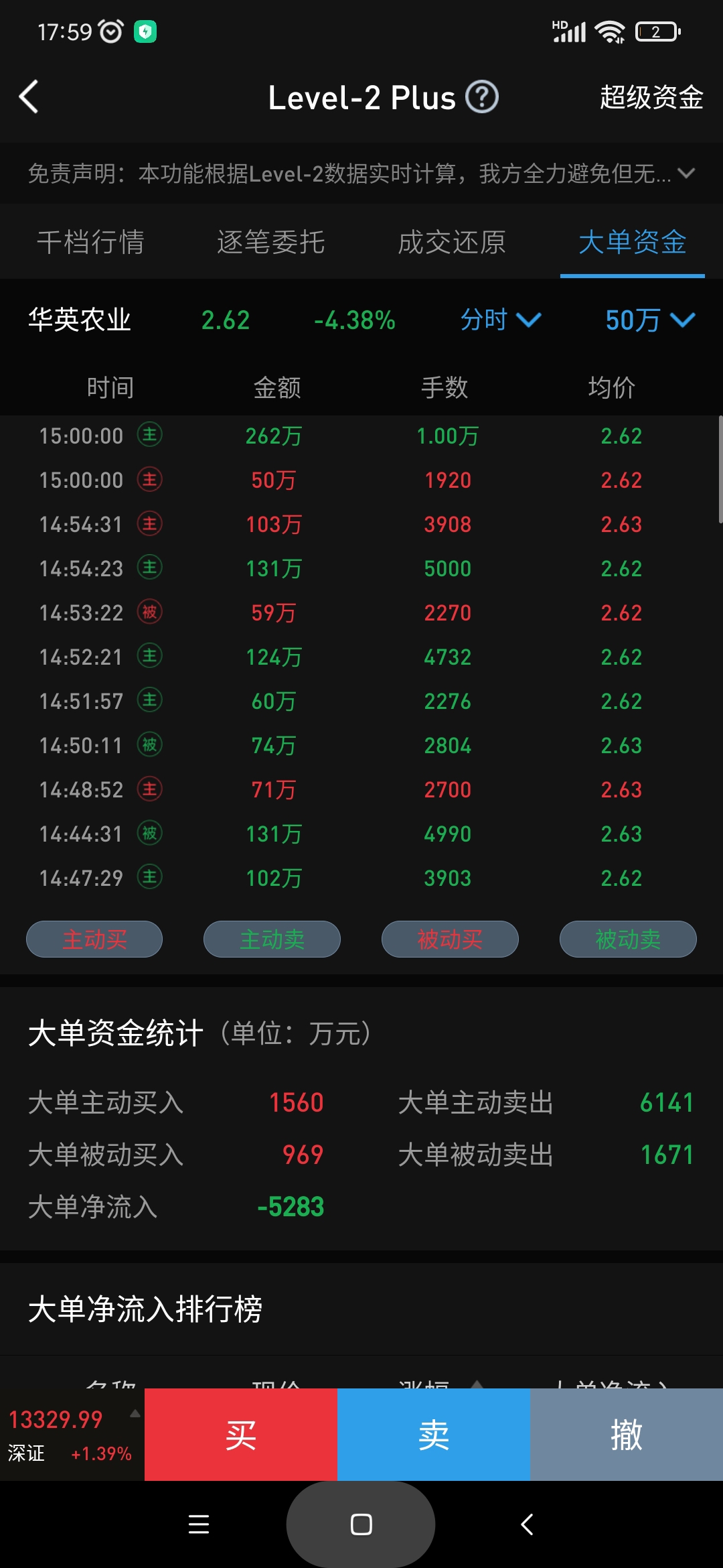$华英农业(SZ002321)$ 提前预告明日大盘,低开低走,这支垃圾股肯定继续跌,3.06处还有很多大单被套,下杀力度不小!机构连尾盘还在卖10000!今日主力狂卖5283万!
