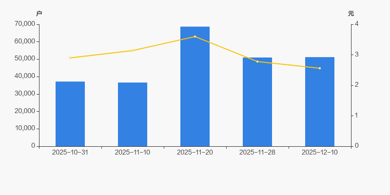 2025年10月31日至今,公司股东户数显著增长,区间涨幅为37.80%。2025年10月31日至2025年12月10日区间股价下降11.72%。