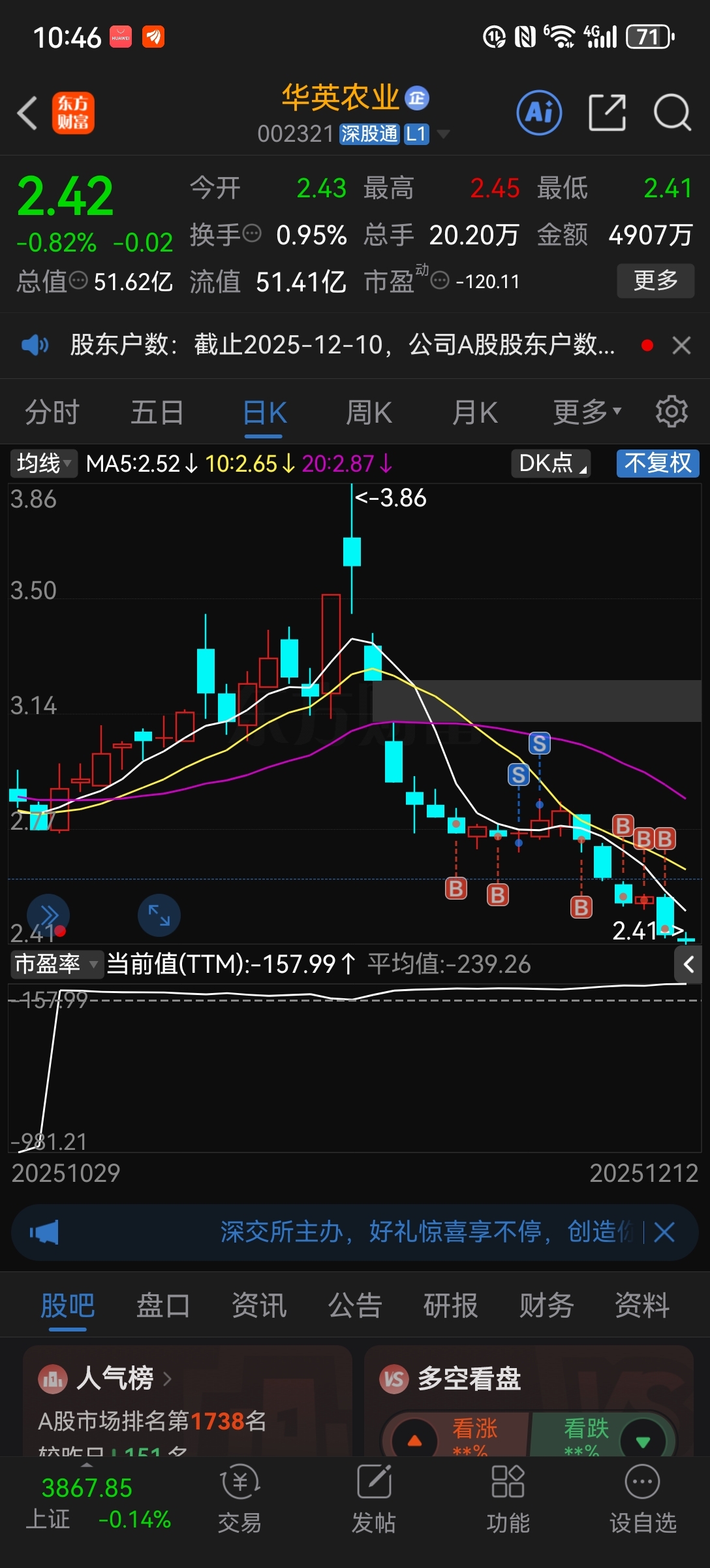 $华英农业(SZ002321)$ 我每次和一只股杠上的时候,它就能每天都跌,我真是绝望了
