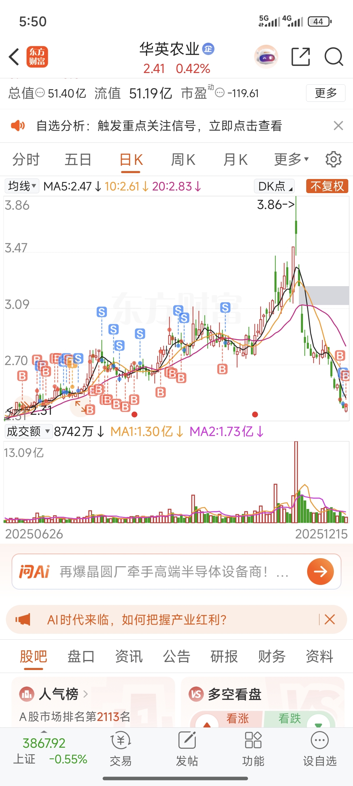 $华英农业(SZ002321)$ 你说我是亏是赚?
