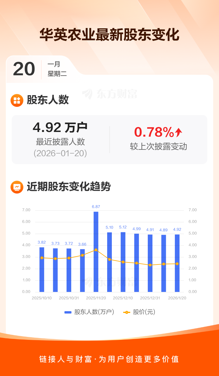 华英农业:截至1月20日最新股东户数4.92万户,较上期增加0.78%
