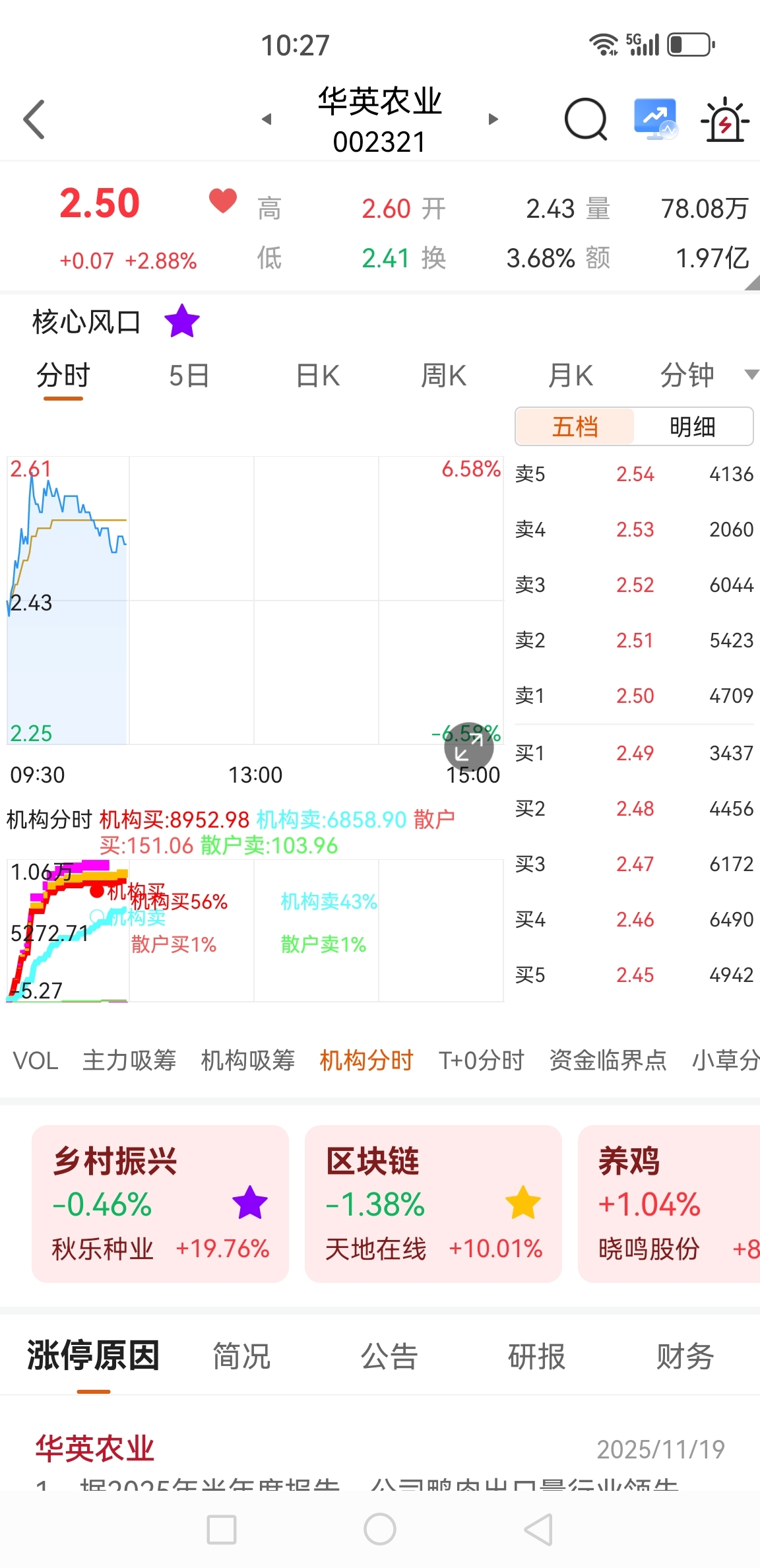 $华英农业(SZ002321)$ 主力机构买了百分之60你们怕什么,今天必起飞