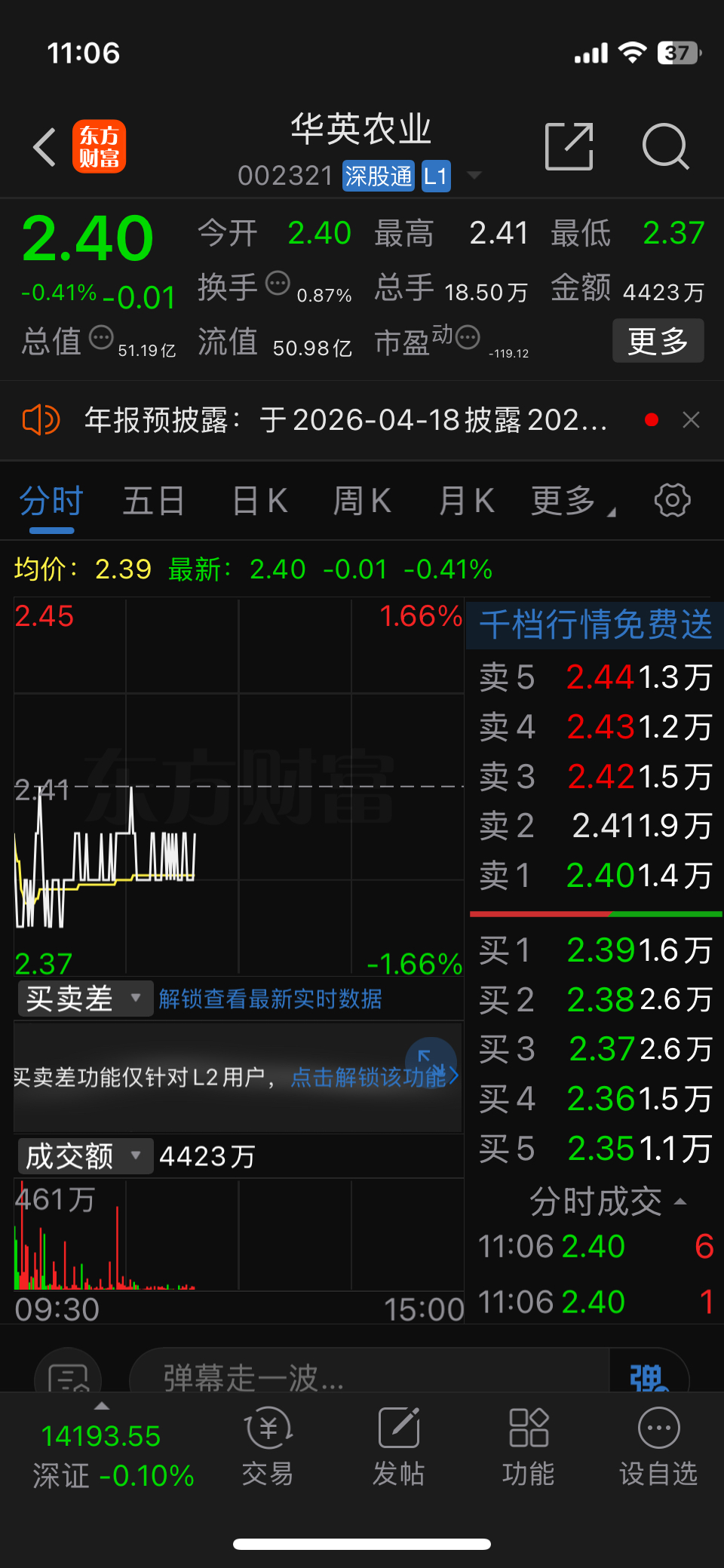 $华英农业(SZ002321)$ 演都不演了,就是要维持股价不动直到拍卖,没耐心的可以节后再买了,237买入,240卖了之前的,做了个小t
