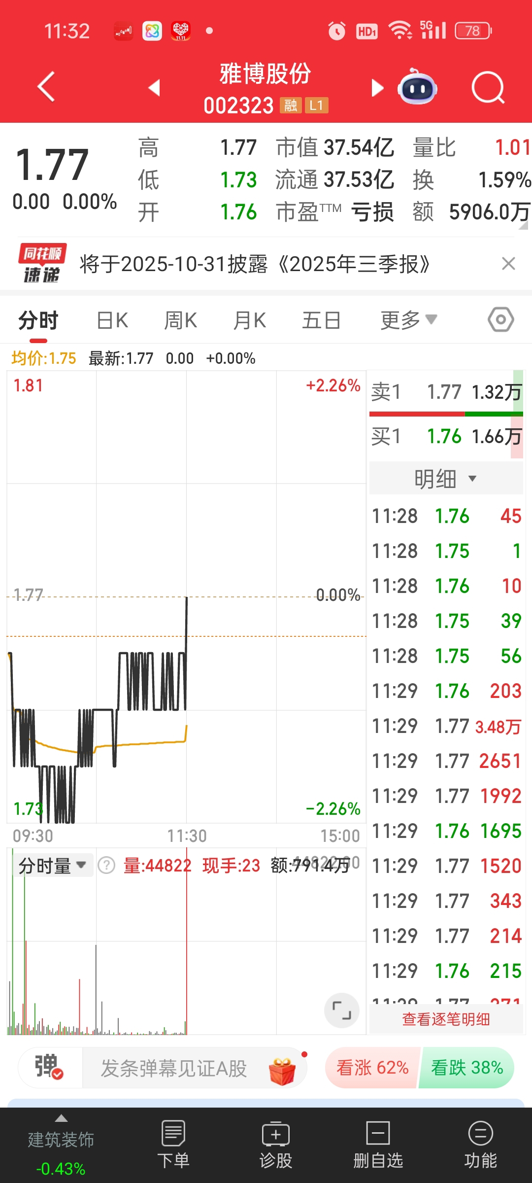 $雅博股份(SZ002323)$ 3.48万,又开始秀肌肉了