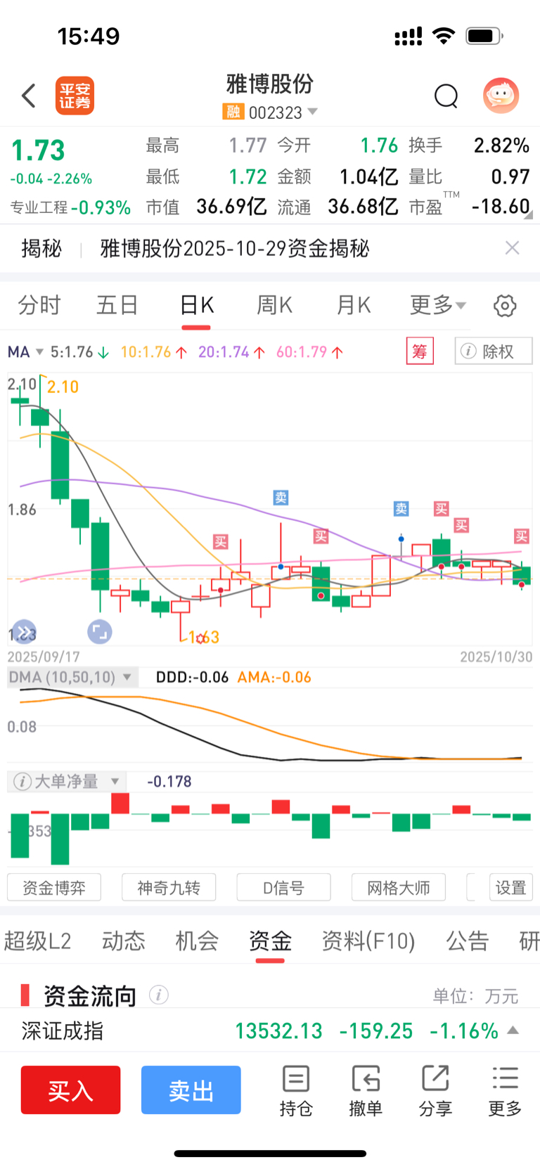 • 波段仓(38手):在1.70-1.85元区间高抛低吸,通过做T降低成本。