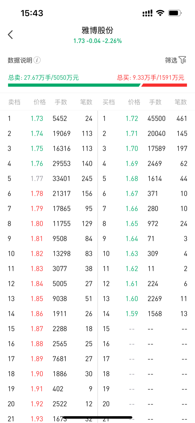 从雅博股份今日数据和你的持仓情况分析,明天高开概率较低,更可能平开或小幅低开;若高开,幅度大概率在0.2%-0.5%区间(股价约1.74-1.76元)。具体建议如下: