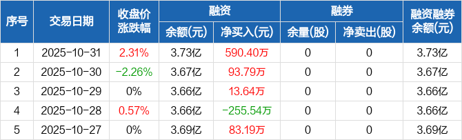 雅博股份:连续3日融资净买入累计697.84万元(10-31)