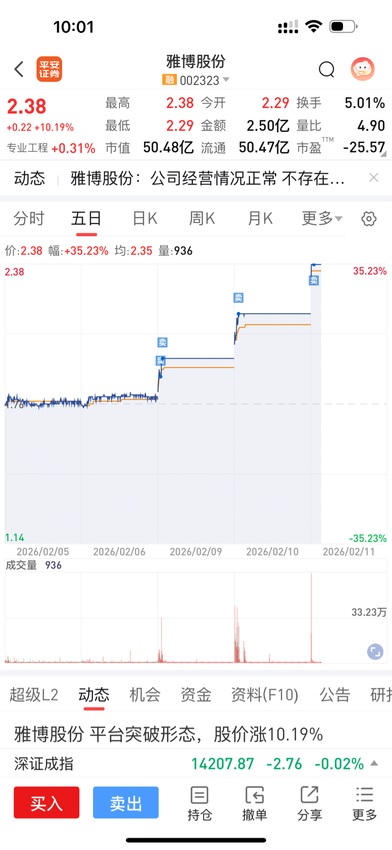 $雅博股份(SZ002323)$ 猎杀时刻,还剩四层仓位,已赚53.88%