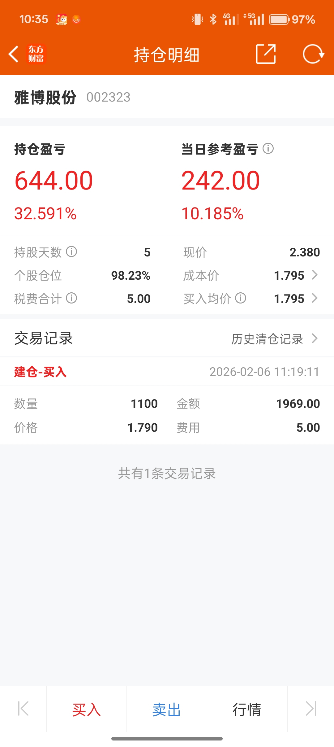 $雅博股份(SZ002323)$ 目标5快,继续冲吧