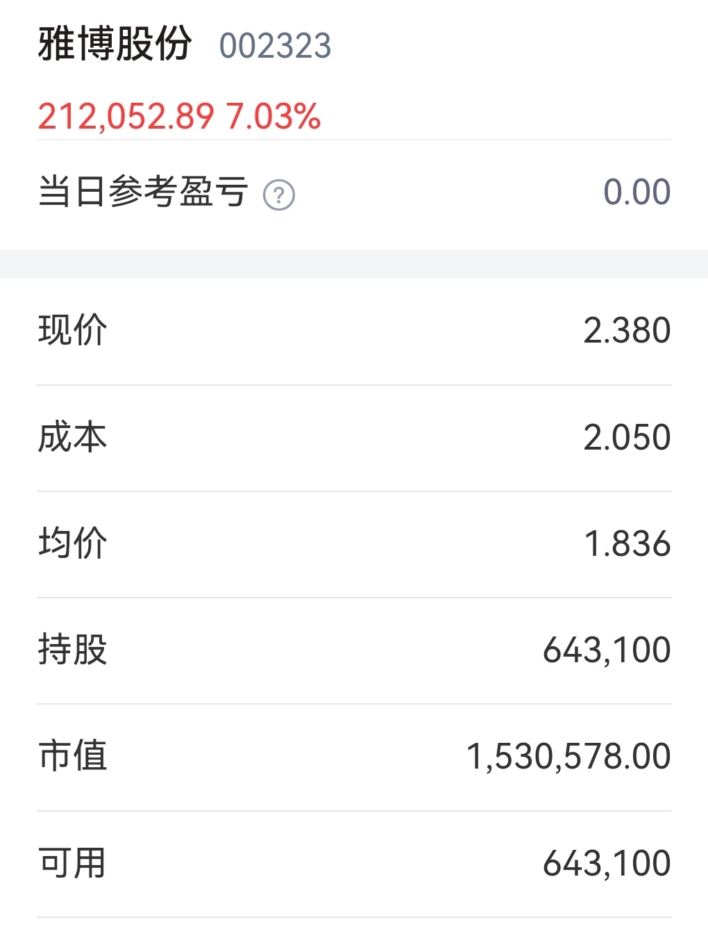 $雅博股份(SZ002323)$ 看我模拟盘,实盘持股同步买入。只是实盘太少