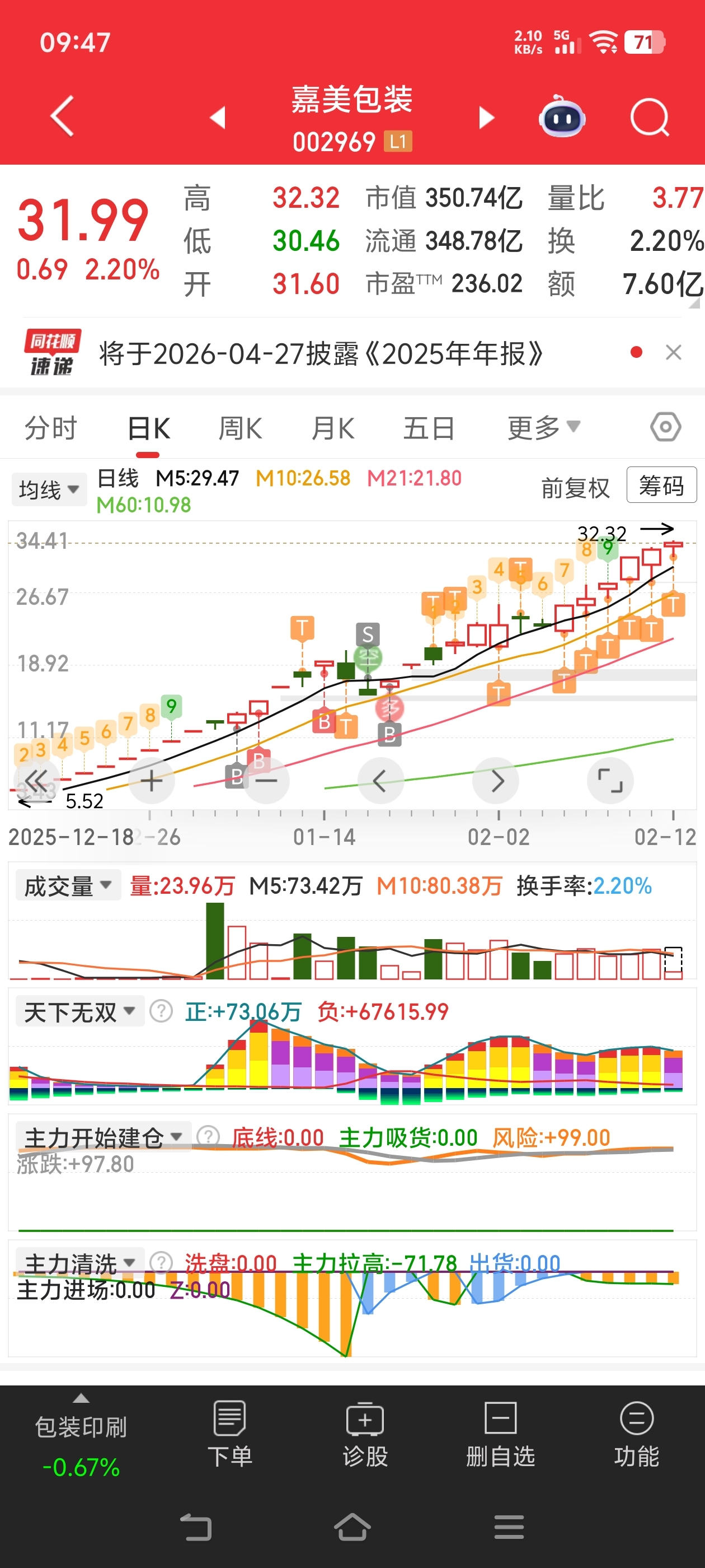 打板明天给溢价就可嘉美包装对子出现了,下午收盘前还是对子的话无条件减仓,有些事情