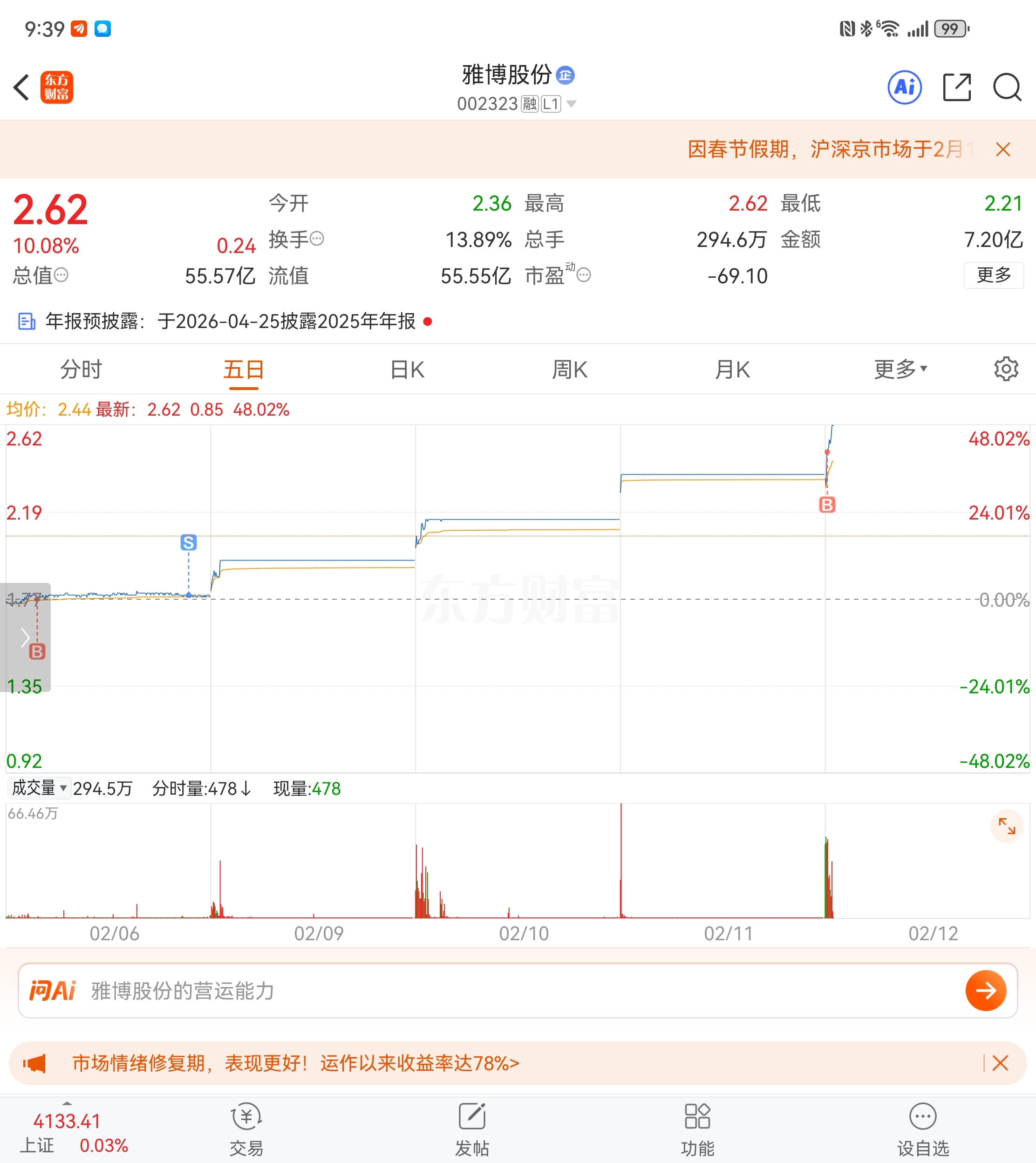 温馨提示: 1.根据《证券法》规定,禁止编造、传播虚假信息或者误导性信息,扰乱证券市场;2.用户在本社区发表的所有资料、言论等仅代表个人观点,与本网站立场无关,不对您构成任何投资建议。用户应基于自己的独立判断,自行决定证券投资并承担相应风险。《东方财富社区管理规定》