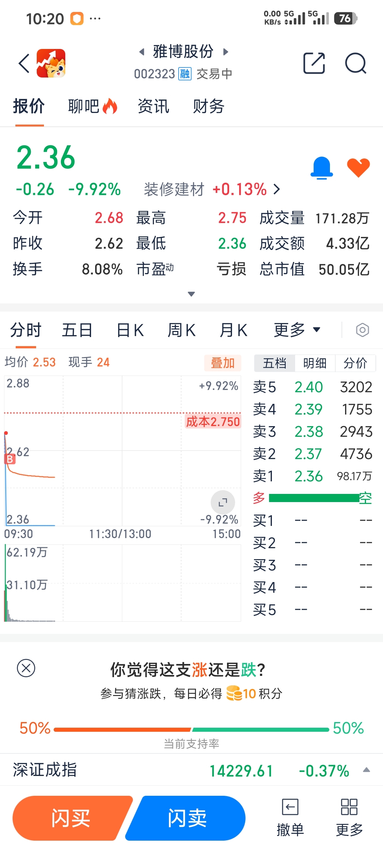 $雅博股份(SZ002323)$ 不买就涨 买完就给我摁里!真服了