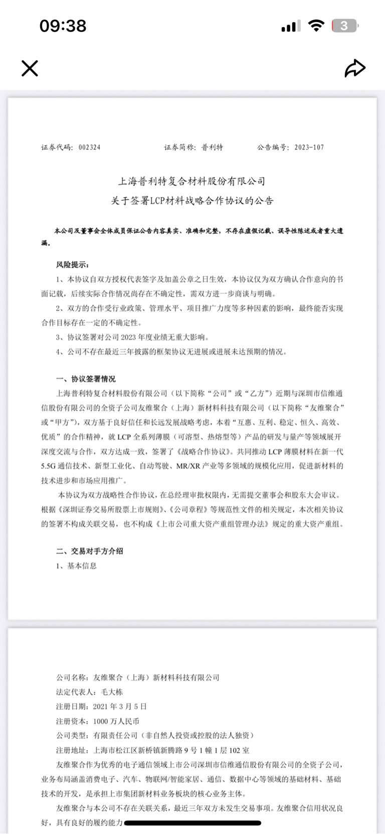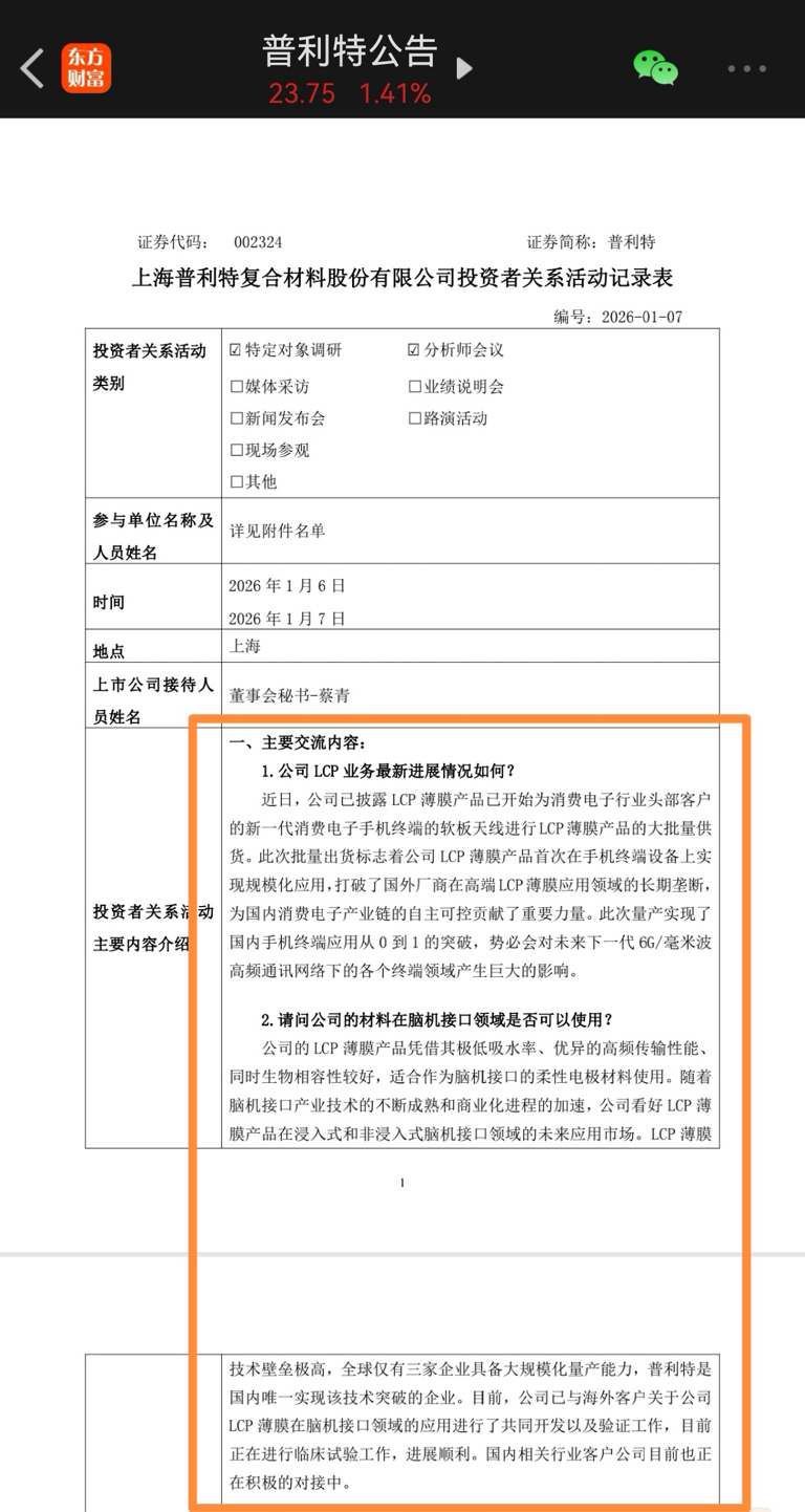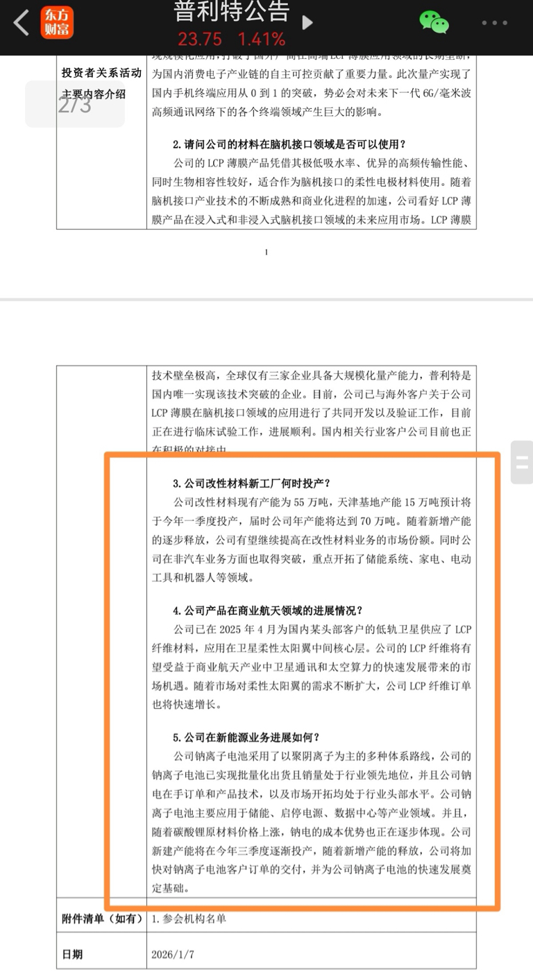 普利特已于2023年通过信维通信全资子公司友维聚合供应SpaceX卫星天线LCP,而信维通信是SpaceX卫星天线独供。普利特已实现卫星天线、卫星太阳翼和6G/卫星互联网终端全覆盖。