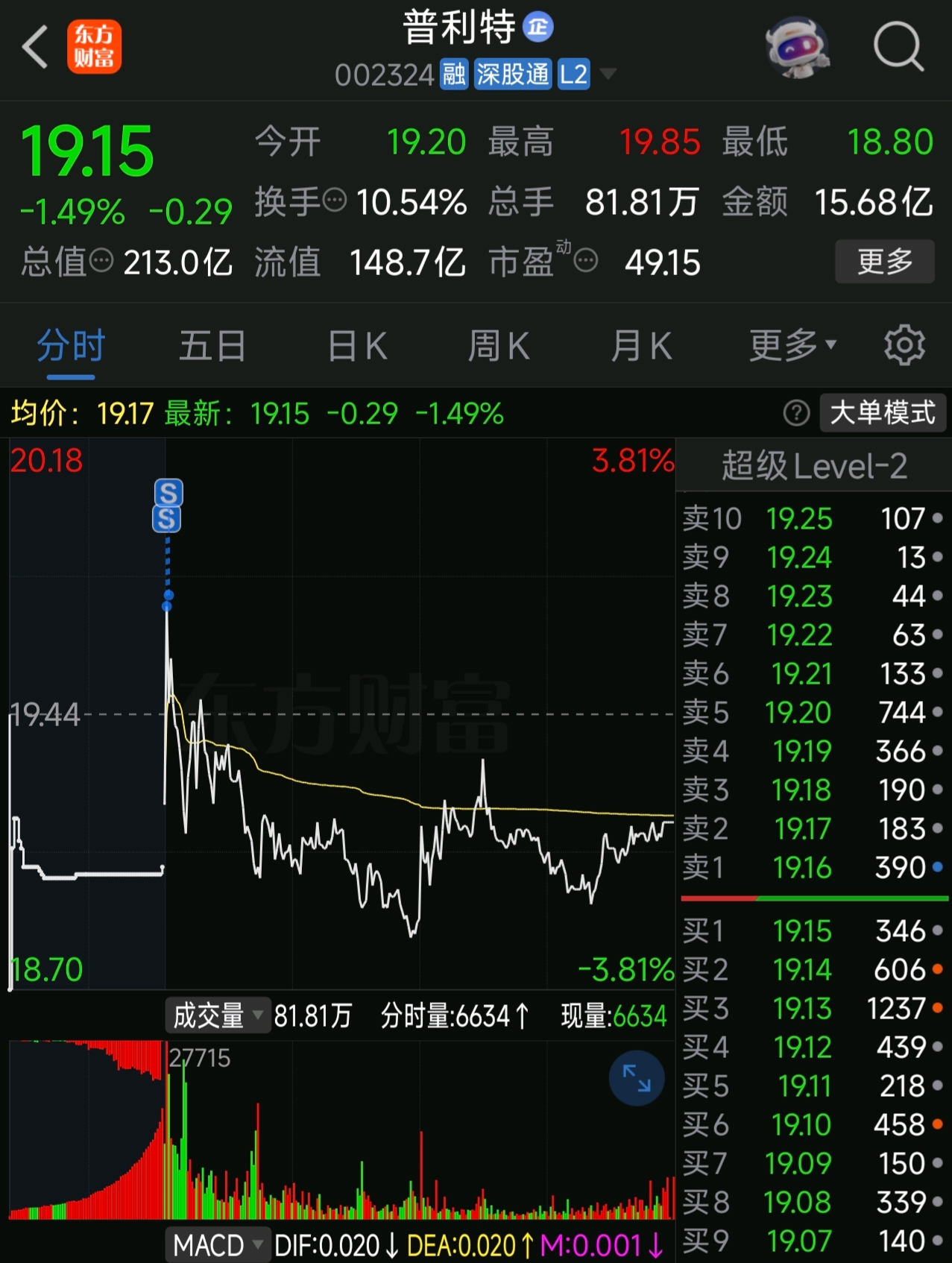 $普利特(SZ002324)$ 昨天买的。今天今天早上19.8附近,最高点吃肉卖了。真心希望今天早上接盘的人,明天可以吃肉出来。#炒股日记#