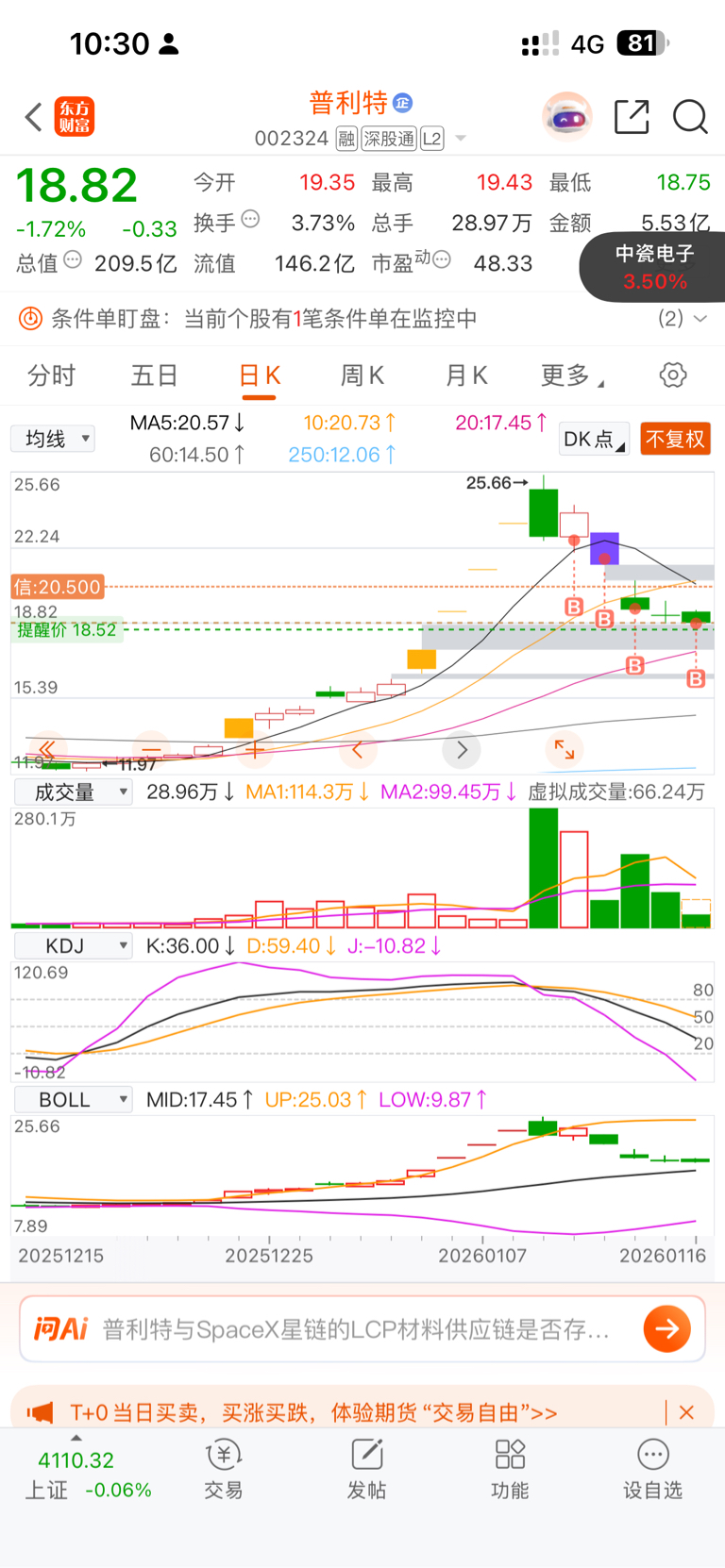 $普利特(SZ002324)$ 股价刚刚已经步入日线级别超卖区间,成本必须控制在上个缺口的下方,最好是5日线下方,这样短期解套无忧,想获利短期是难了,这个月的收益被它拖累了
