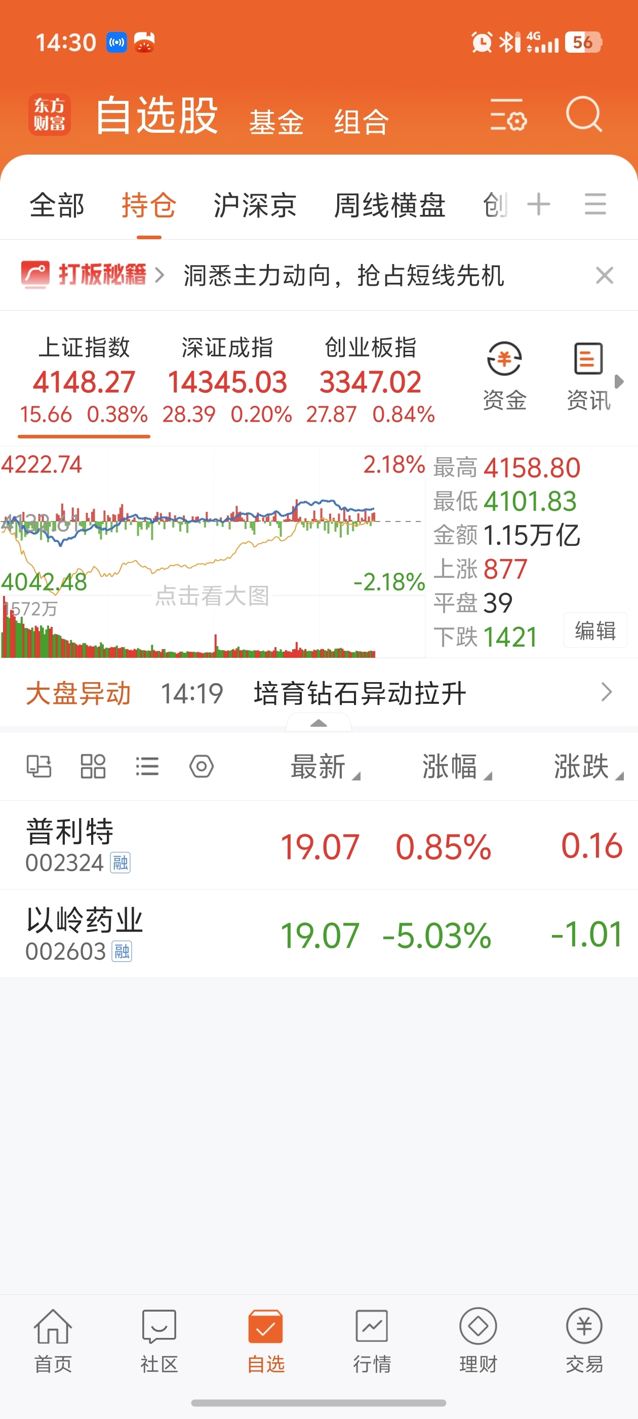 $普利特(SZ002324)$ 持仓的两只价格神同步