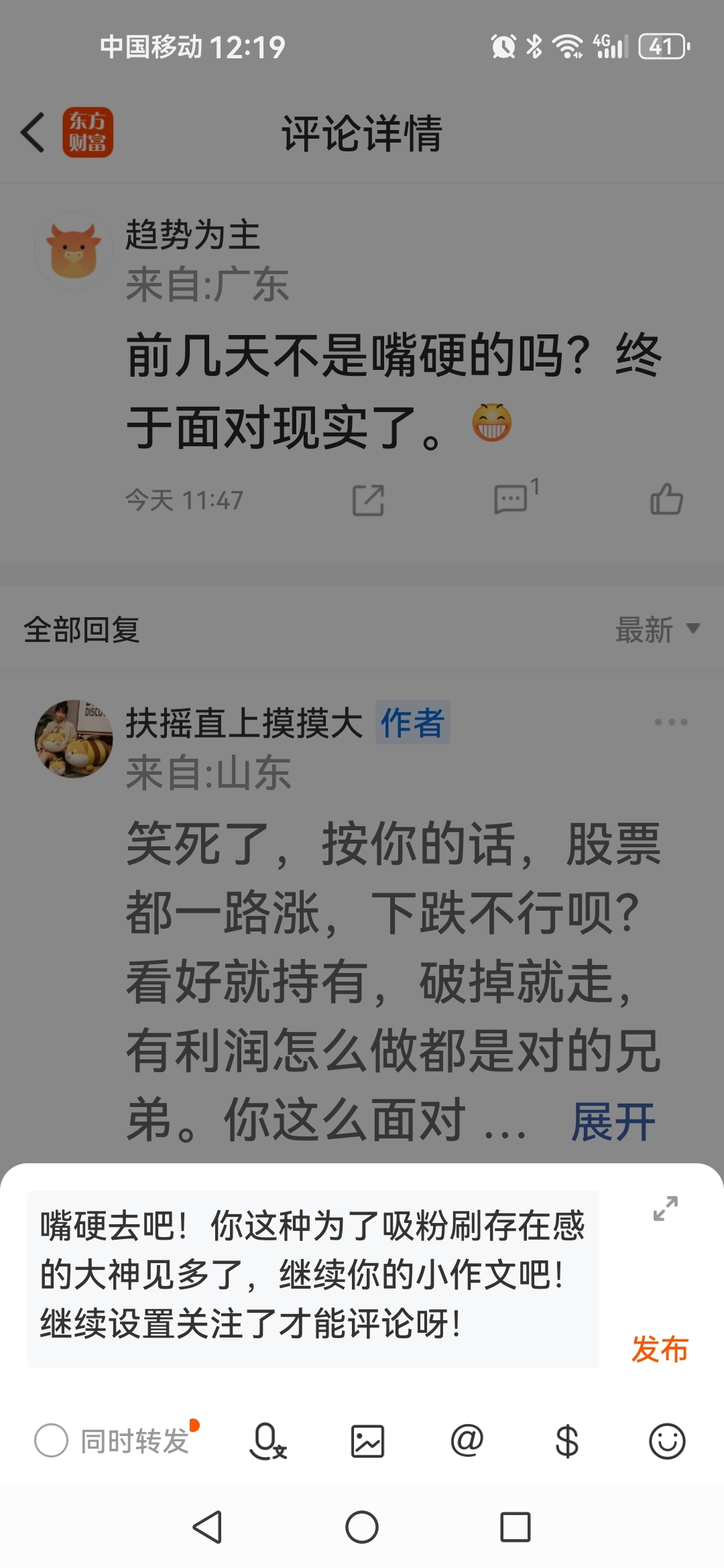 温馨提示: 1.根据《证券法》规定,禁止编造、传播虚假信息或者误导性信息,扰乱证券市场;2.用户在本社区发表的所有资料、言论等仅代表个人观点,与本网站立场无关,不对您构成任何投资建议。用户应基于自己的独立判断,自行决定证券投资并承担相应风险。《东方财富社区管理规定》