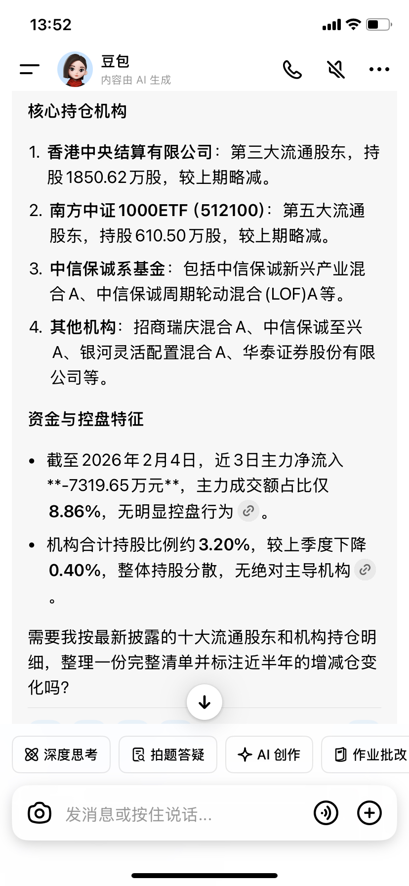 机构柚子也帮你们查好了,下次买股先问问豆包控盘机构,避坑