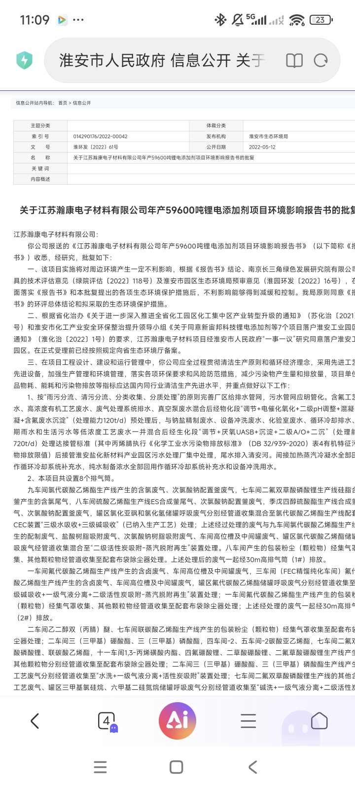 5.96万吨电解液添加剂项目一期已建成投产