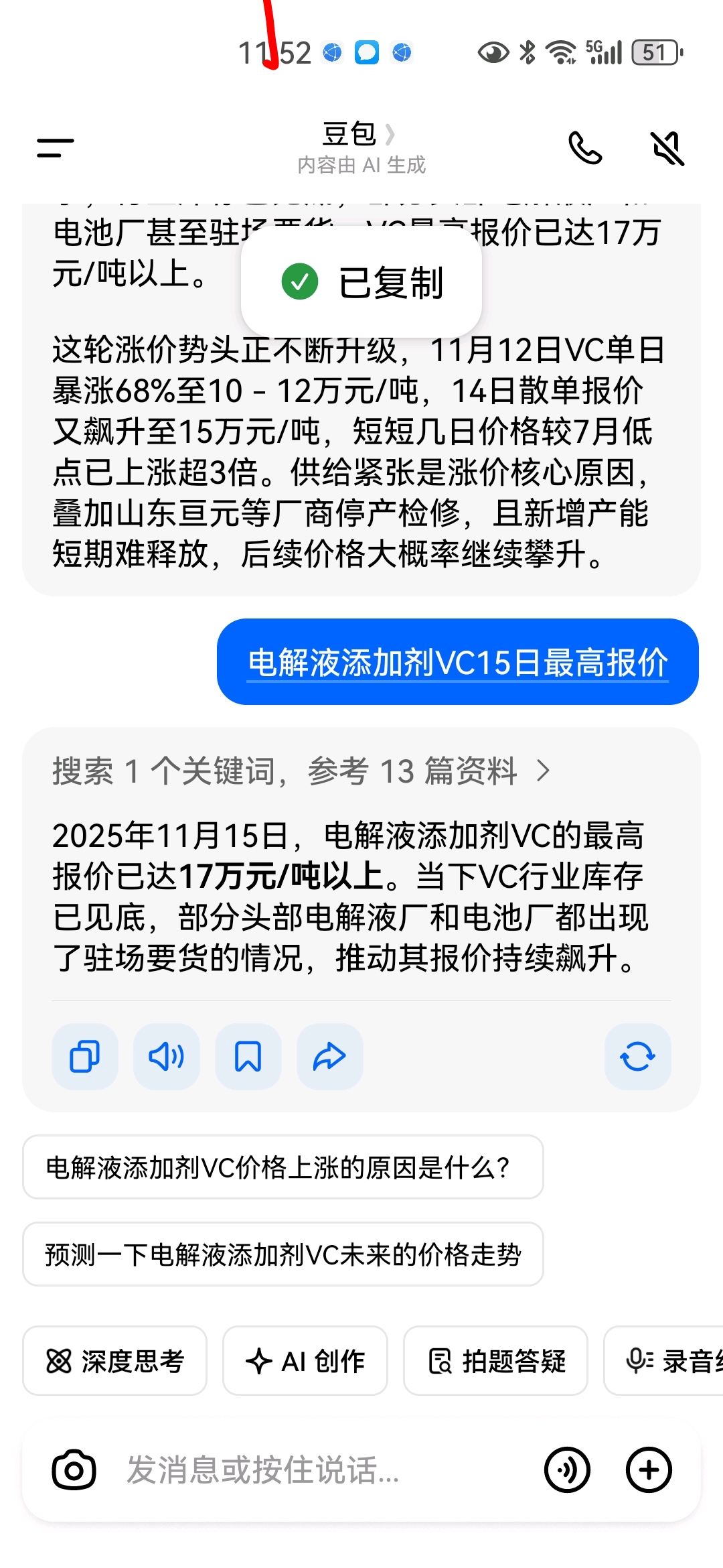 电解液添加剂VC价格15日最高达17万/吨,持续上涨。持有永太科技的慌个锤子,套