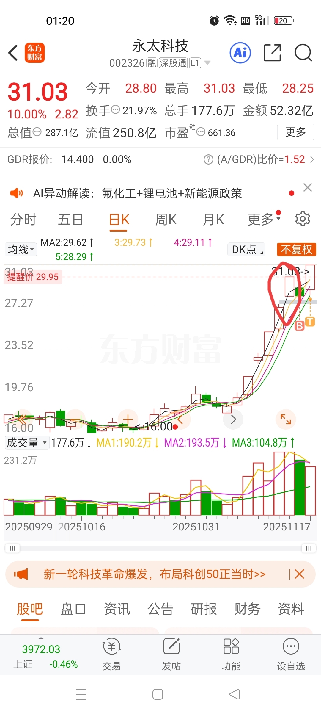 $永太科技(SZ002326)$ 其实这票主要确定周四的放量涨停,是绝对的多头,和周四的东百一样,东百当天多头比这个强我是毫不犹豫的打板,绝对的强势板还要很多人说什么大分歧出货之类的话,说不是情绪好就A杀了,就是一些韭菜根本不懂是什么板,只知道放量了炸板了,