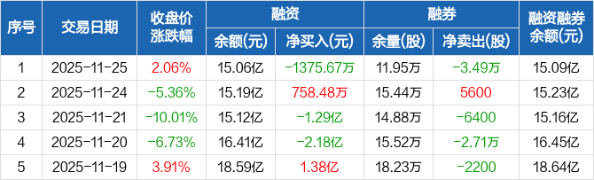 永太科技:融资净偿还1375.67万元,融资余额15.06亿元(11-25)